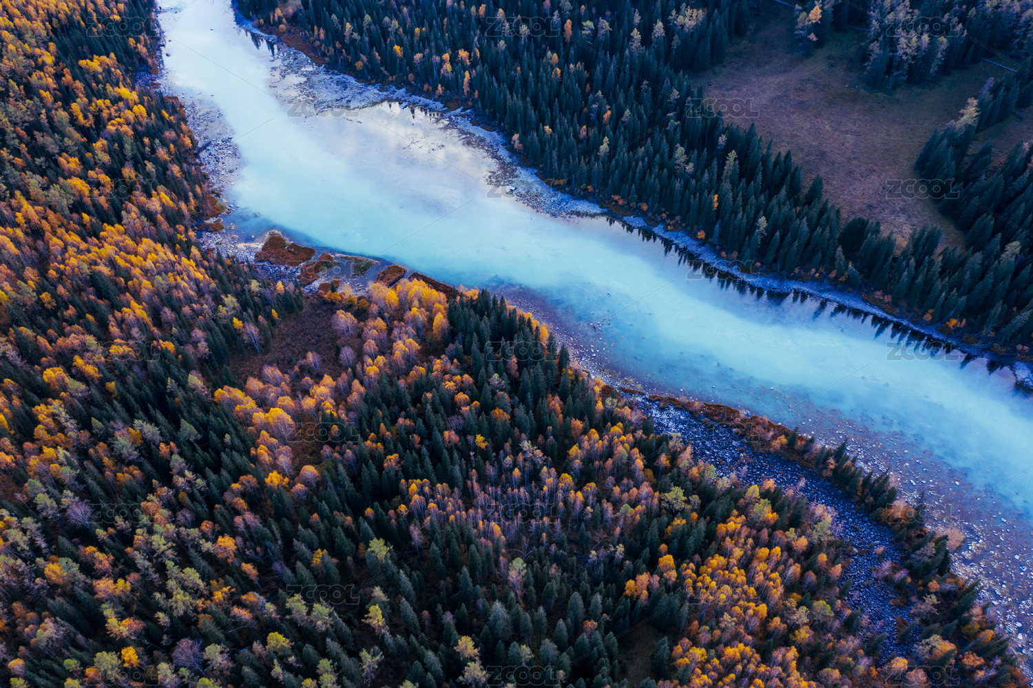 喀纳斯,航拍,新疆,蓝色多瑙河,雪,秋天,中国