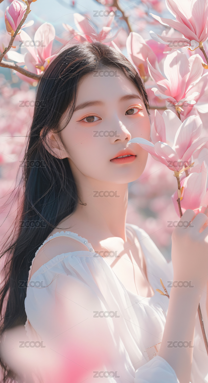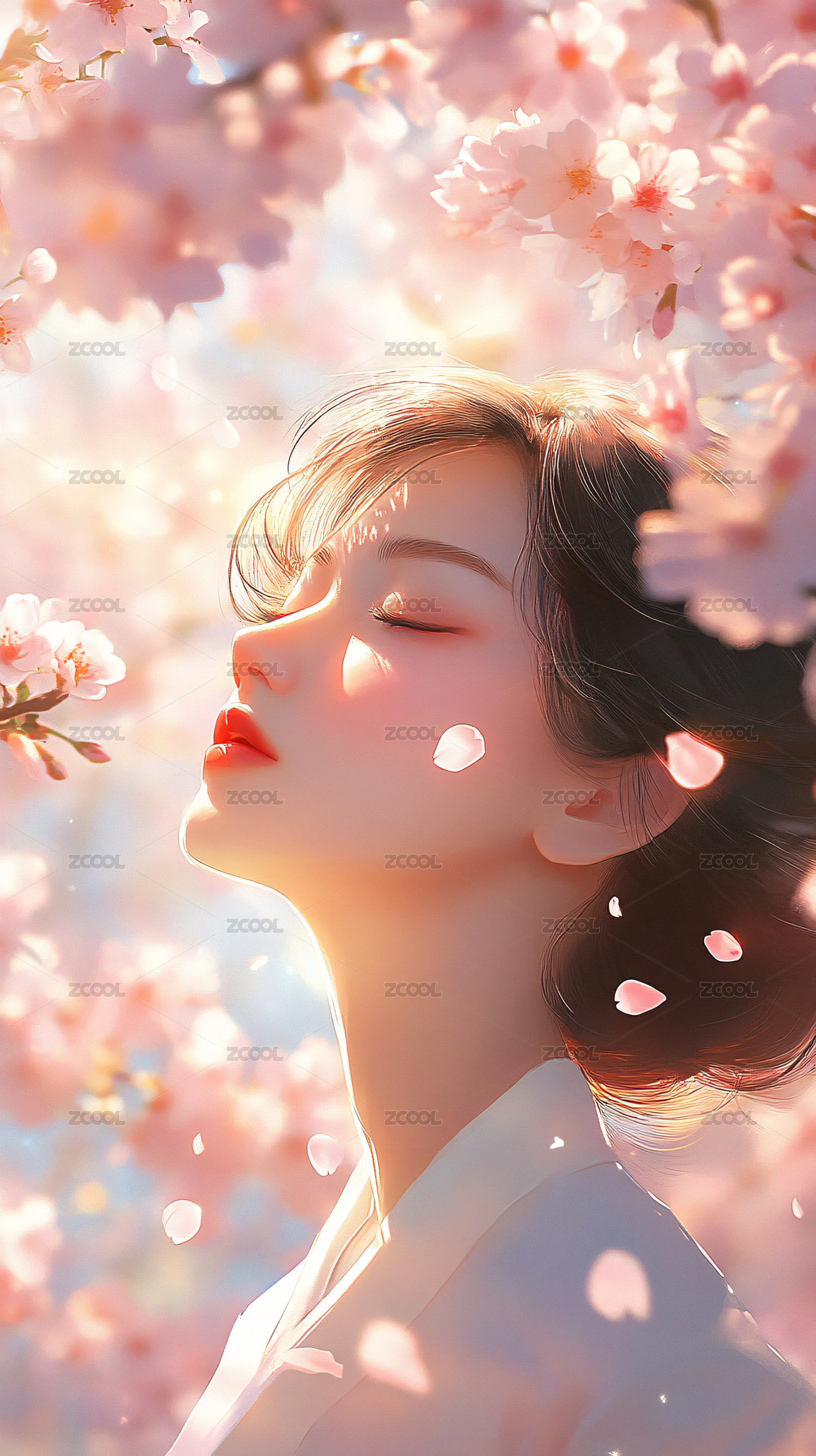 美女,公园,花朵,植物,写真,肖像,女性,长发,闭眼