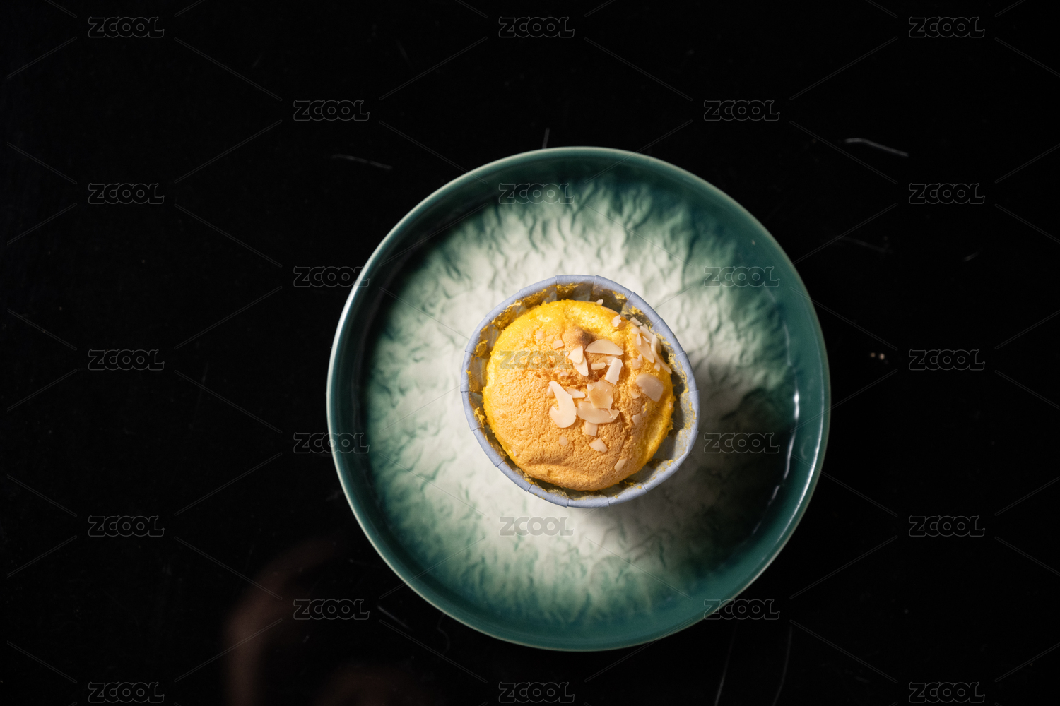 桌面上的盘子里的美味可口的纸杯蛋糕