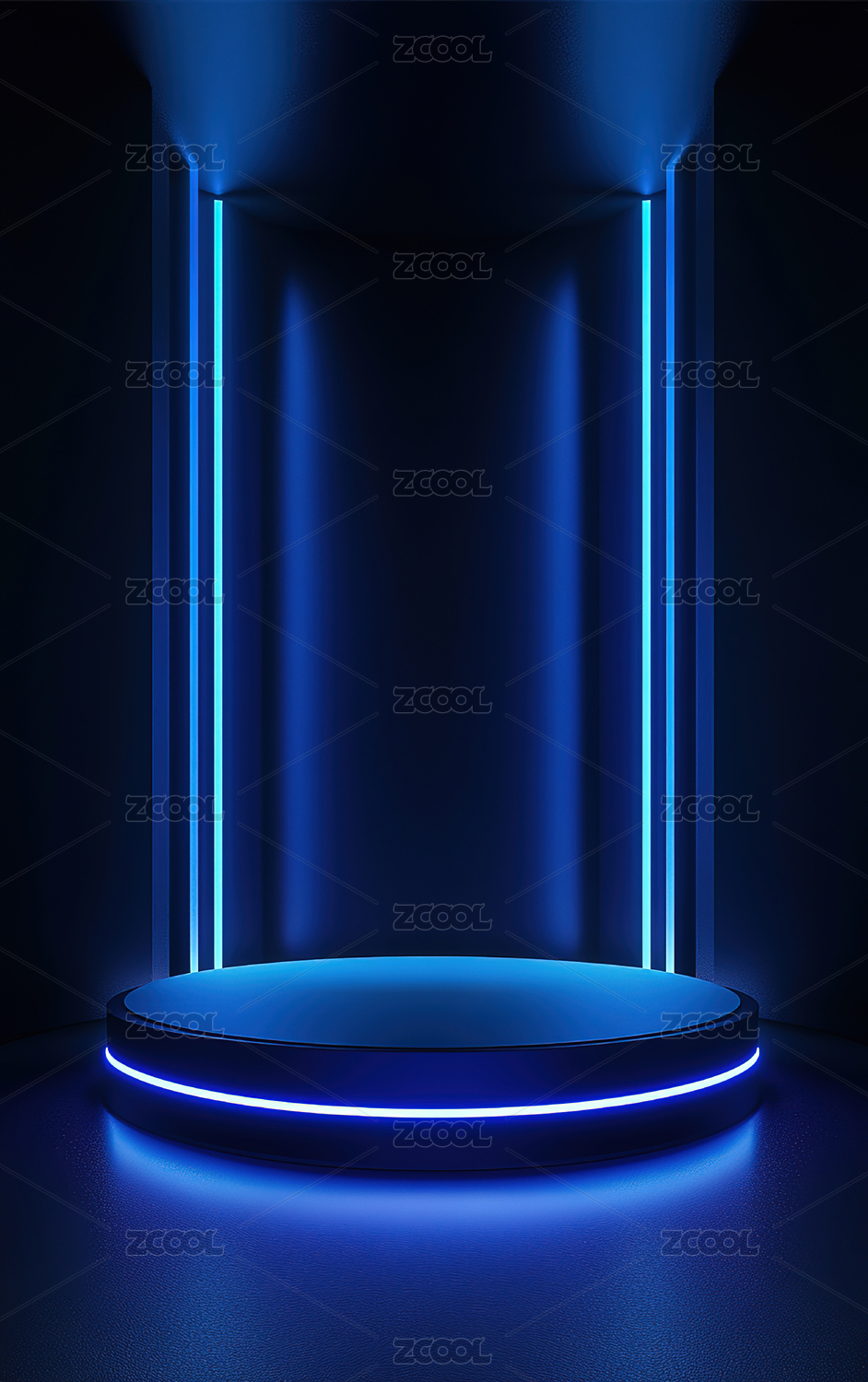 蓝色霓虹灯圆形舞台背景