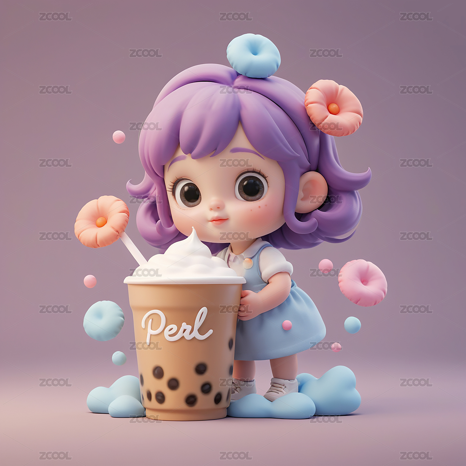 3D卡通拿着奶茶的美女