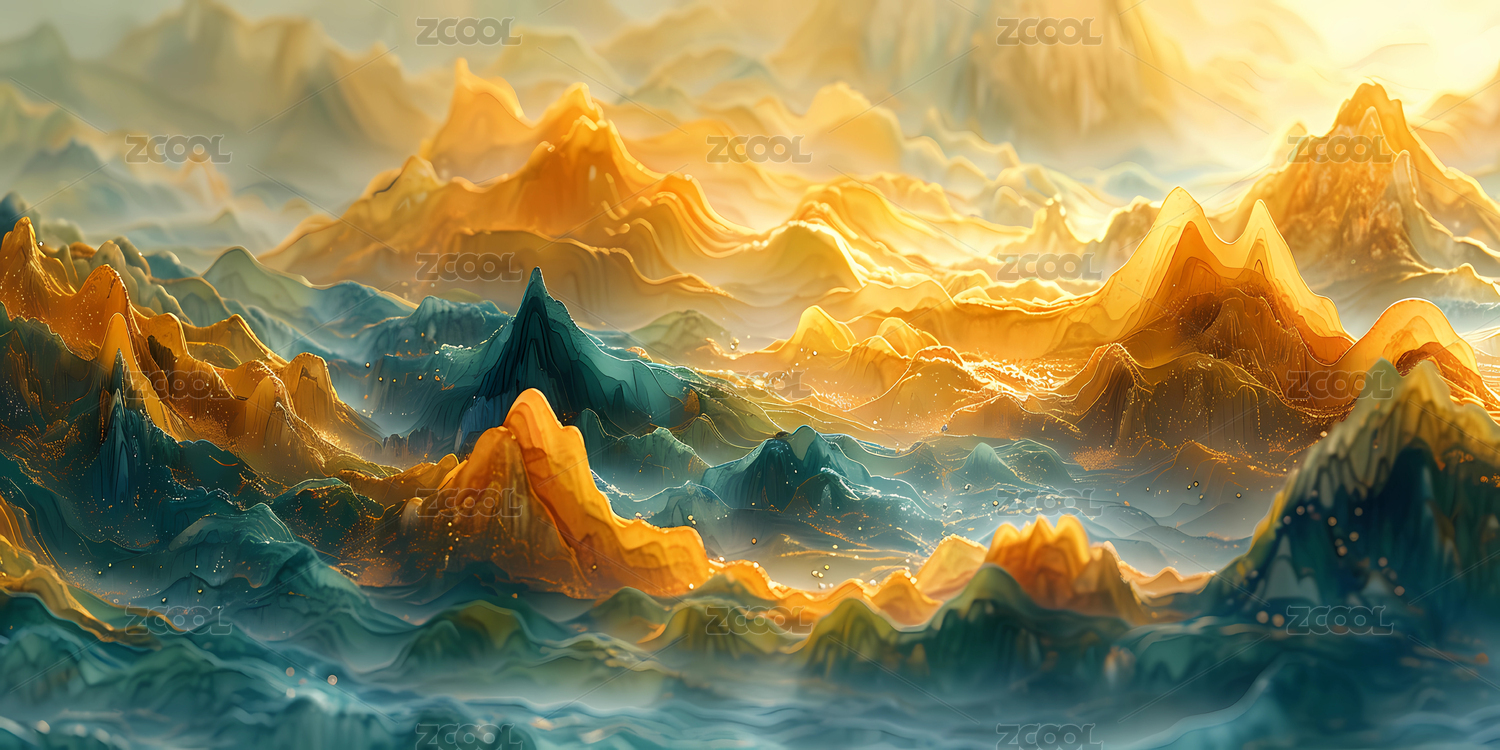梦幻山峦金色夕阳
