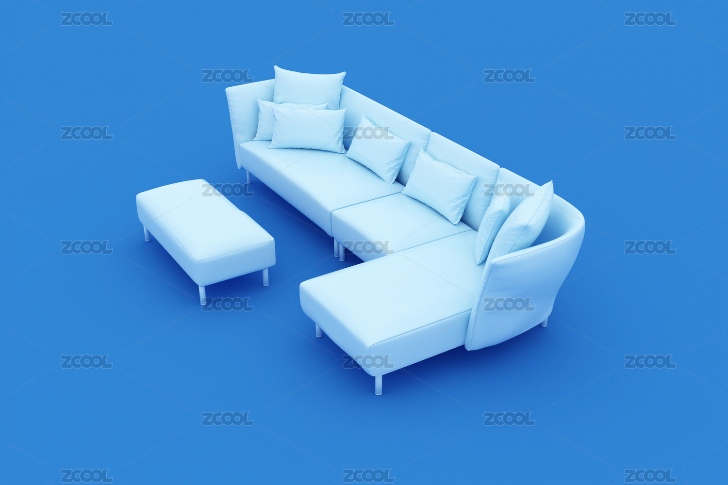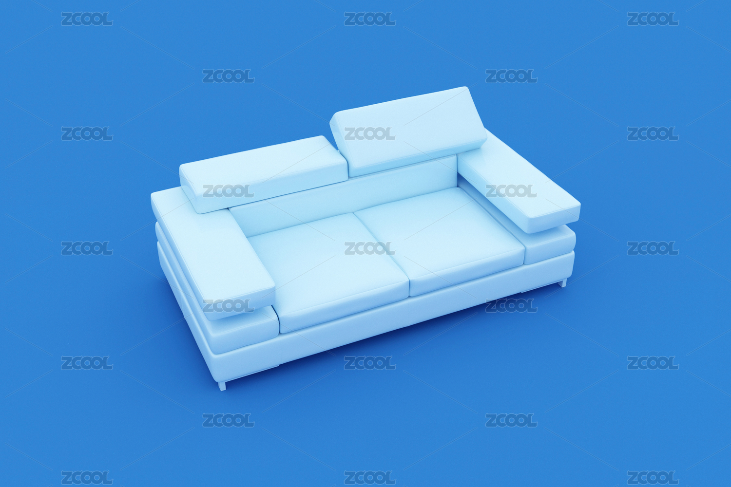 沙发,家具,室内,蓝色,休闲,纯色,平面,样式,3d,插图