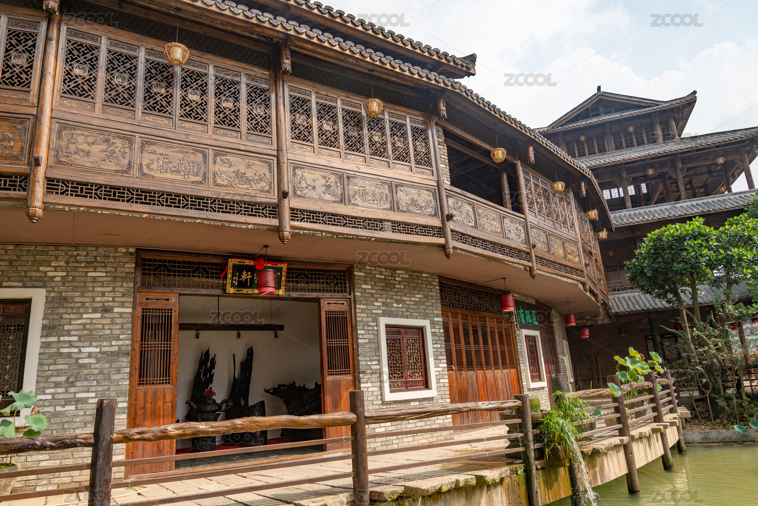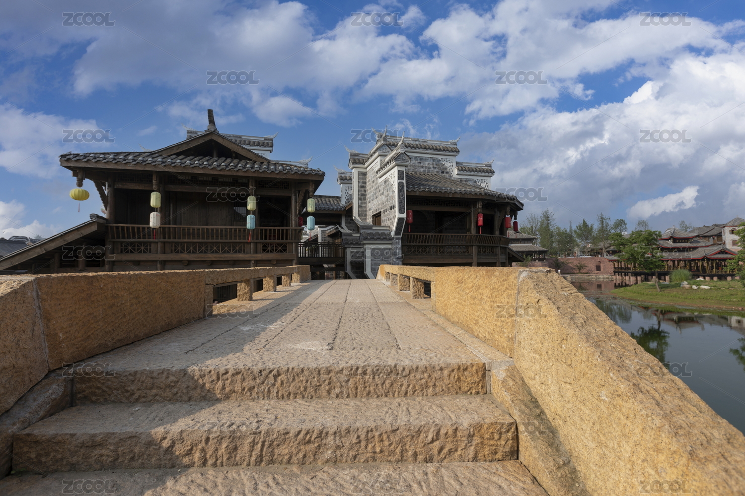 公园,古建筑,中式,园林,鲜艳,建筑,景观,池塘,影视城,庭院