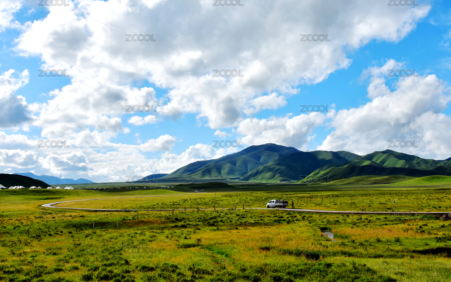 甘南秘境洛克之路连绵绿色山脉蓝天白云