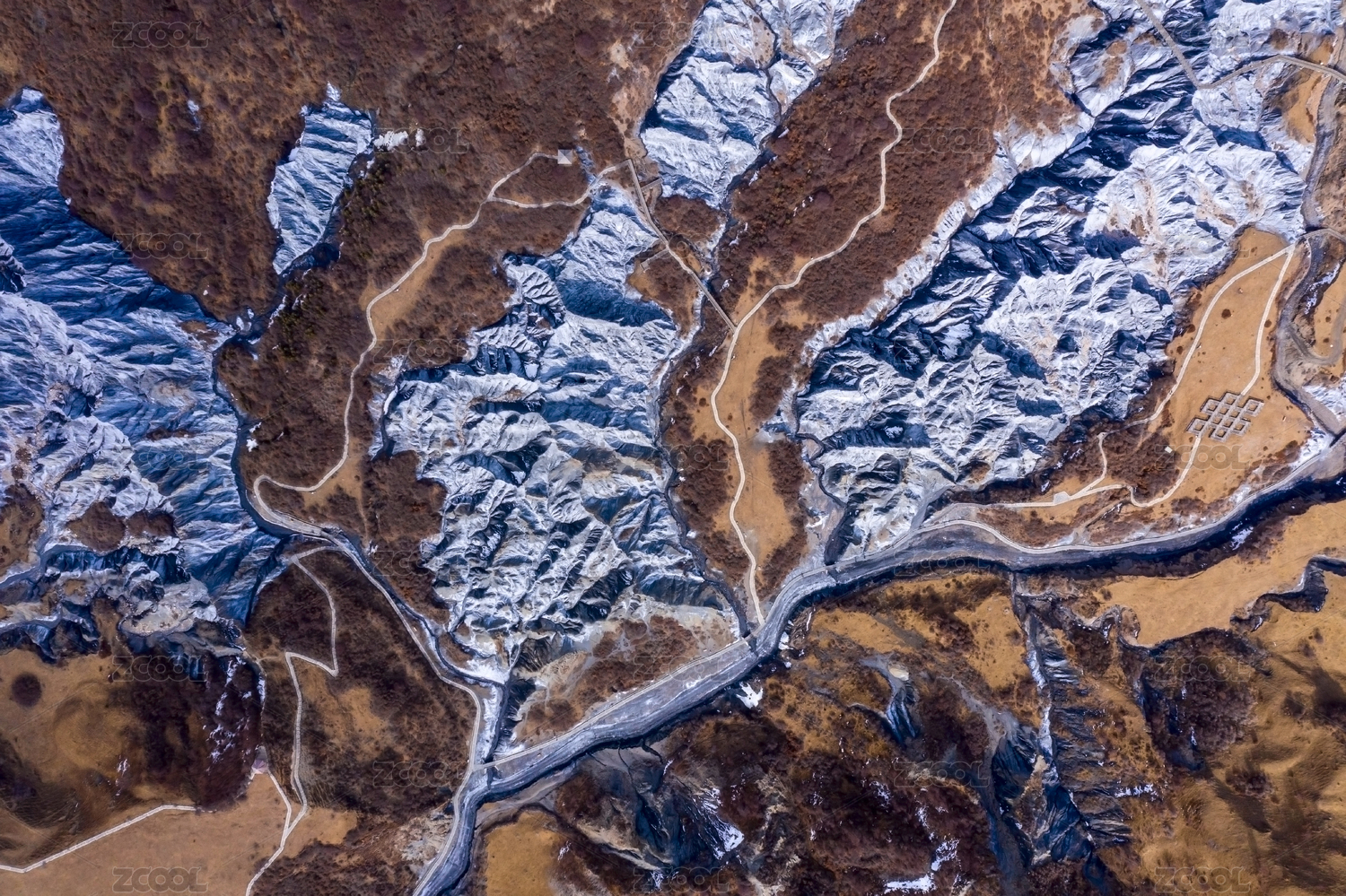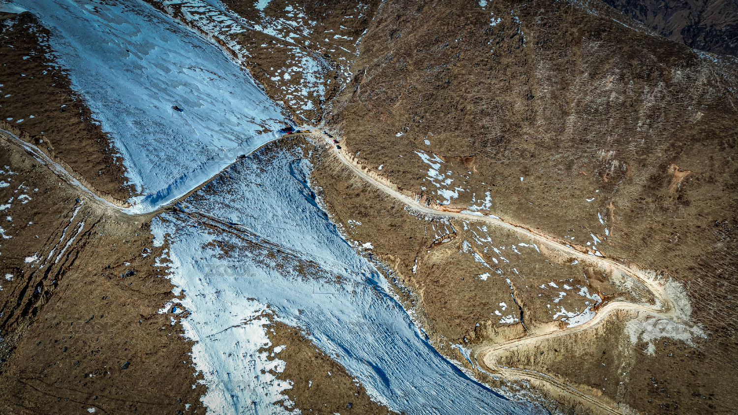 中国新疆塔县盘龙古道秋季雪景航拍