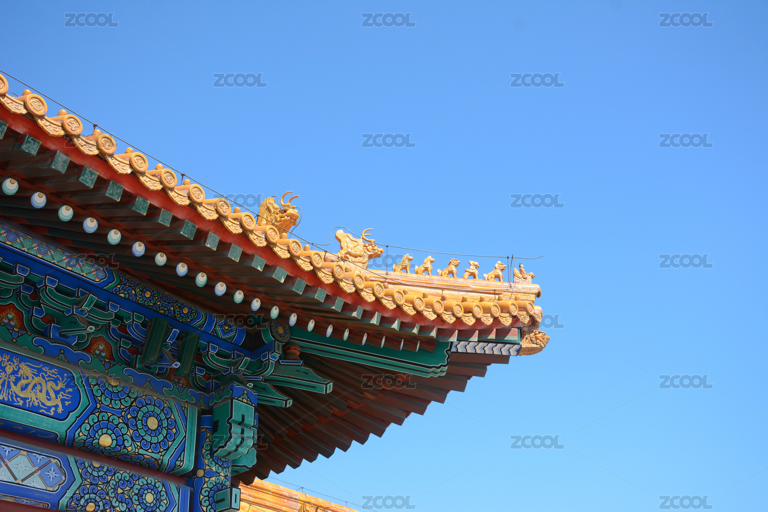 中国北京天坛屋檐的仙人走兽