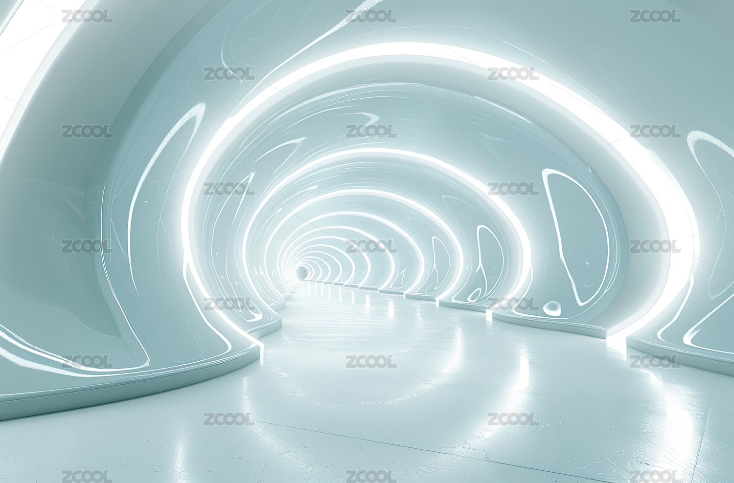 未来主义白色走廊隧道
