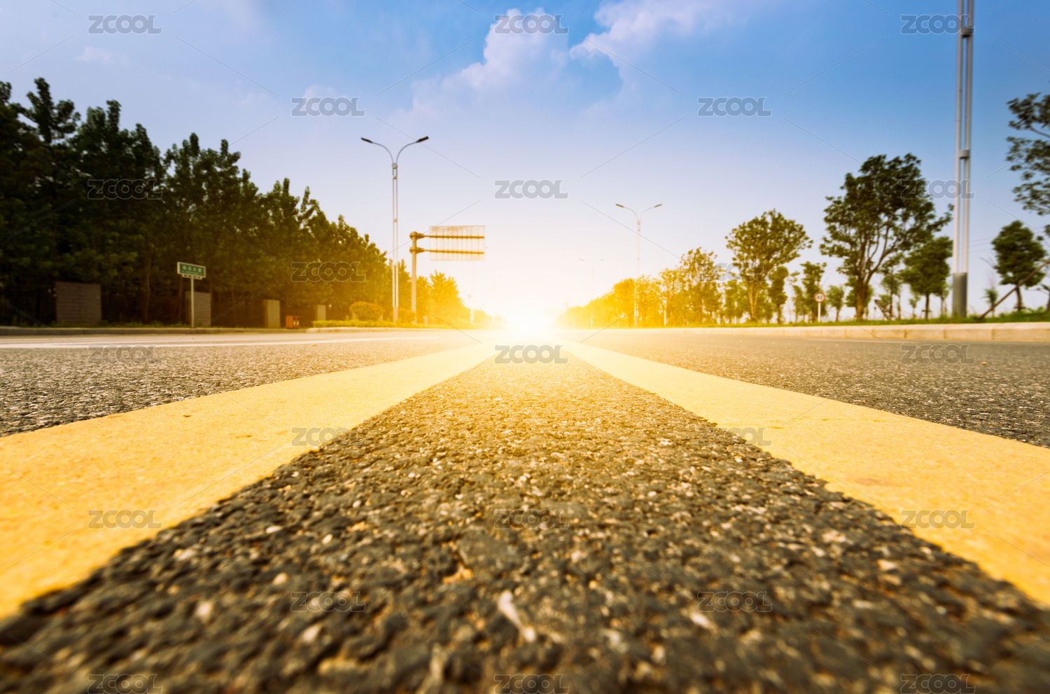 笔直的公路尽头朝阳升起