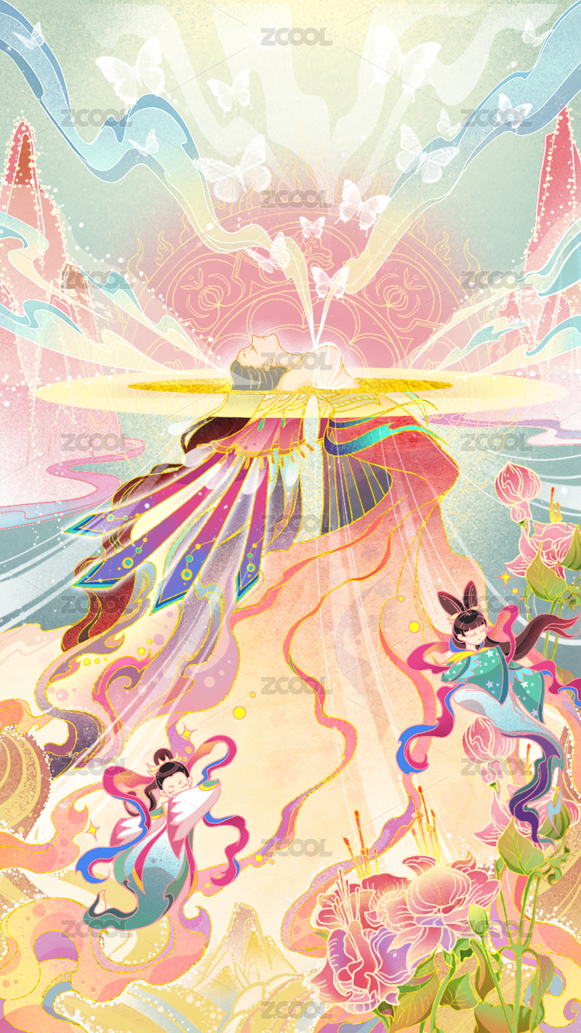 敦煌兔子鸣沙山月牙泉飞天少女国潮年