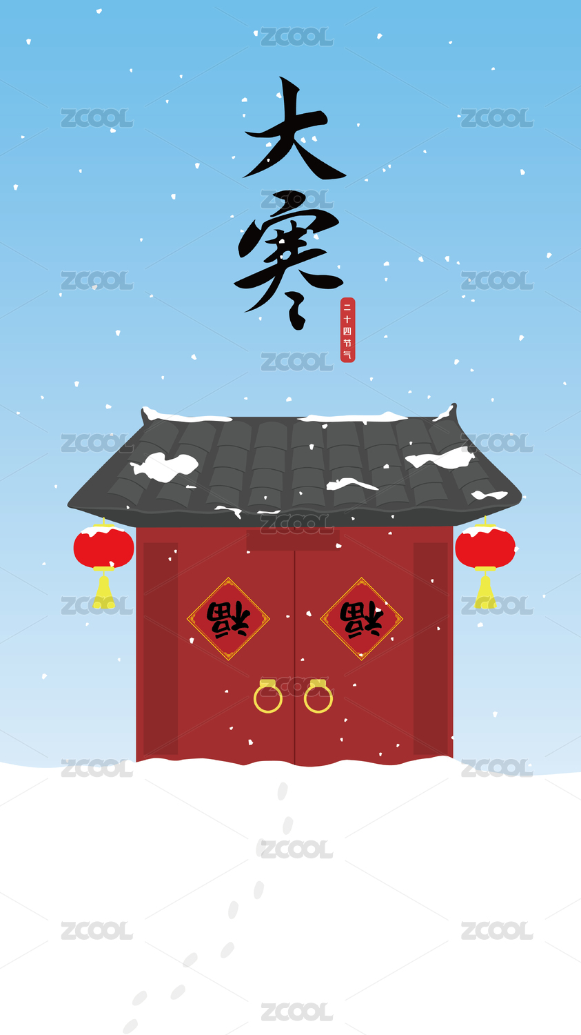 冬日大寒节气插画