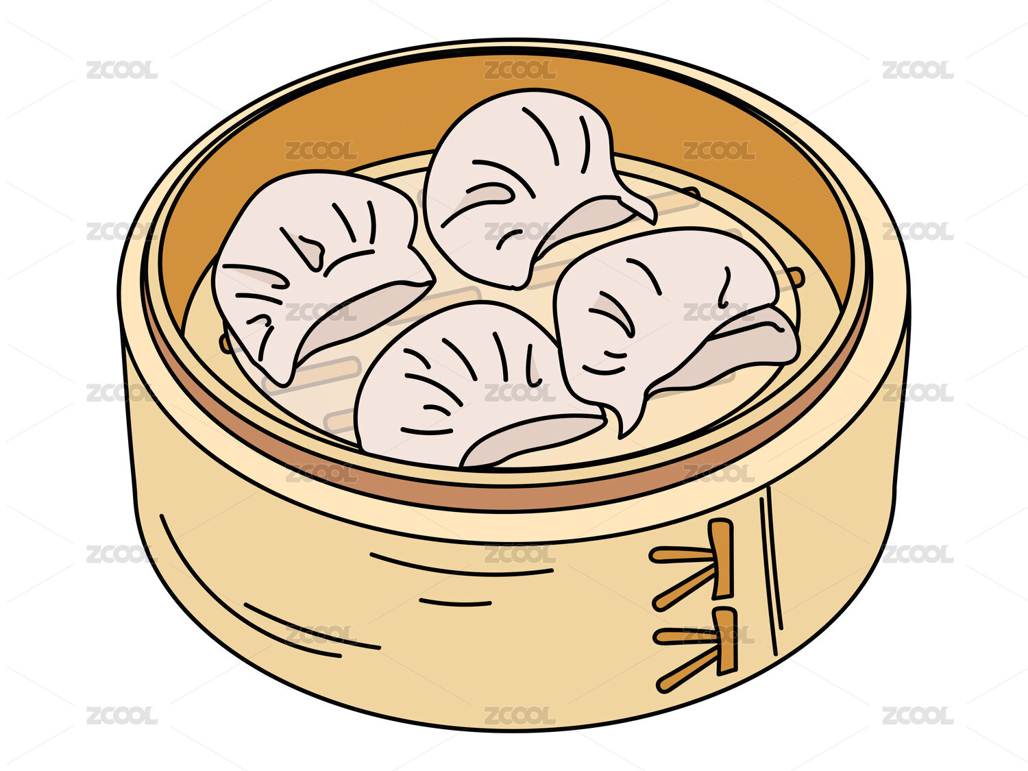 粤式早茶,元素,小吃,美味,食品,插画,虾饺,蒸笼