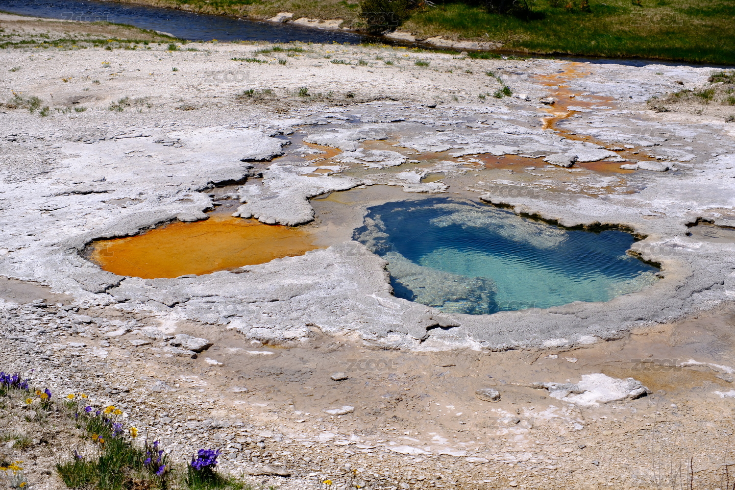 美国黄石国家公园的热气腾腾的温泉池