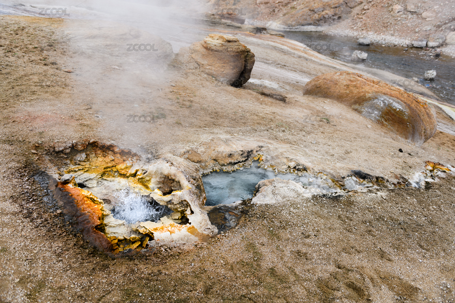 冰岛热气腾腾的hverir硫磺地热泉