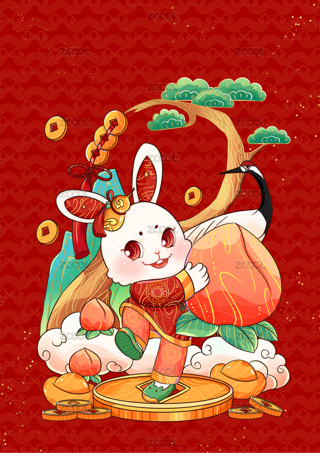 穿着汉服的兔子拿着玉如意坐在柿子堆上