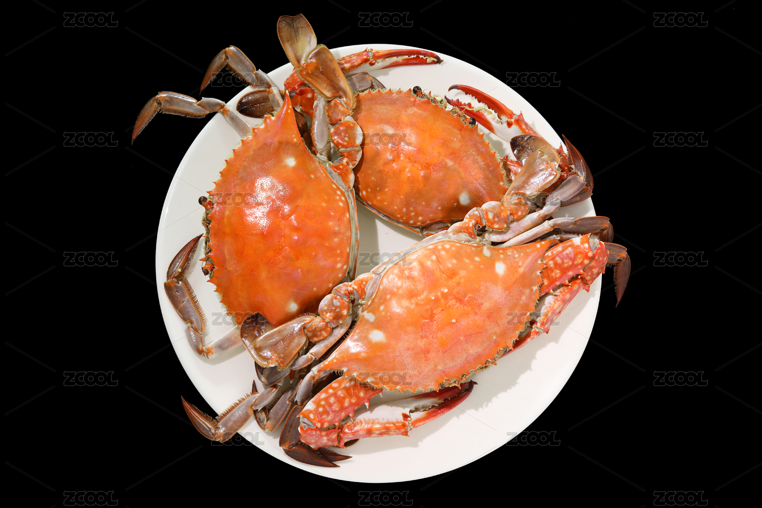 黑色背景上的一盘子秋天海鲜美食螃蟹大闸蟹