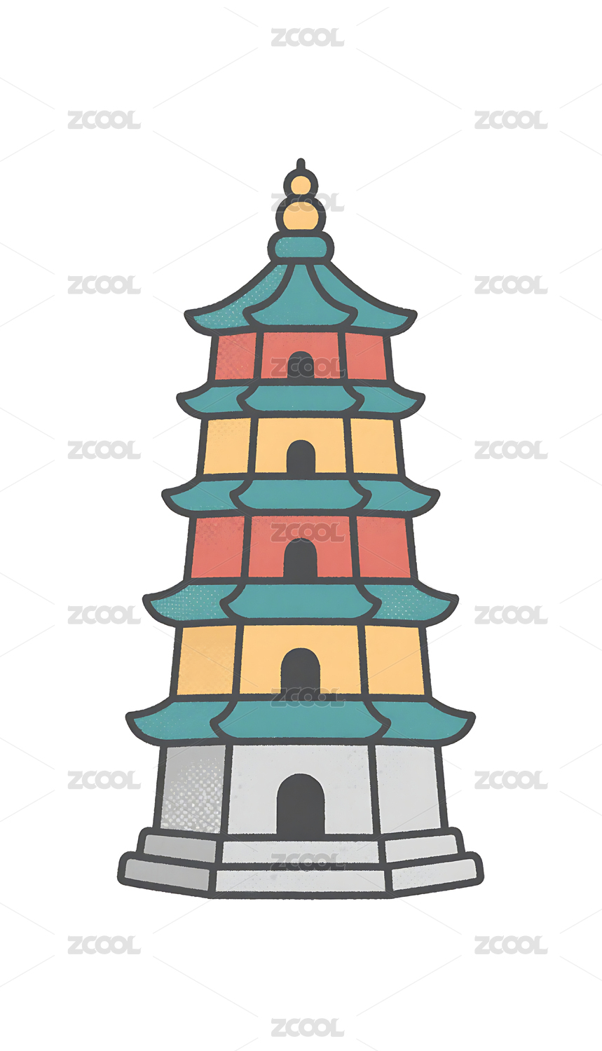 国潮卡通风格古建筑石塔插画素材