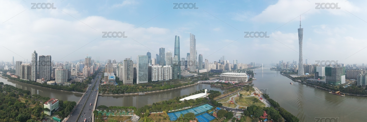 航拍广州珠江新城金融商务区建筑群和城市天际线