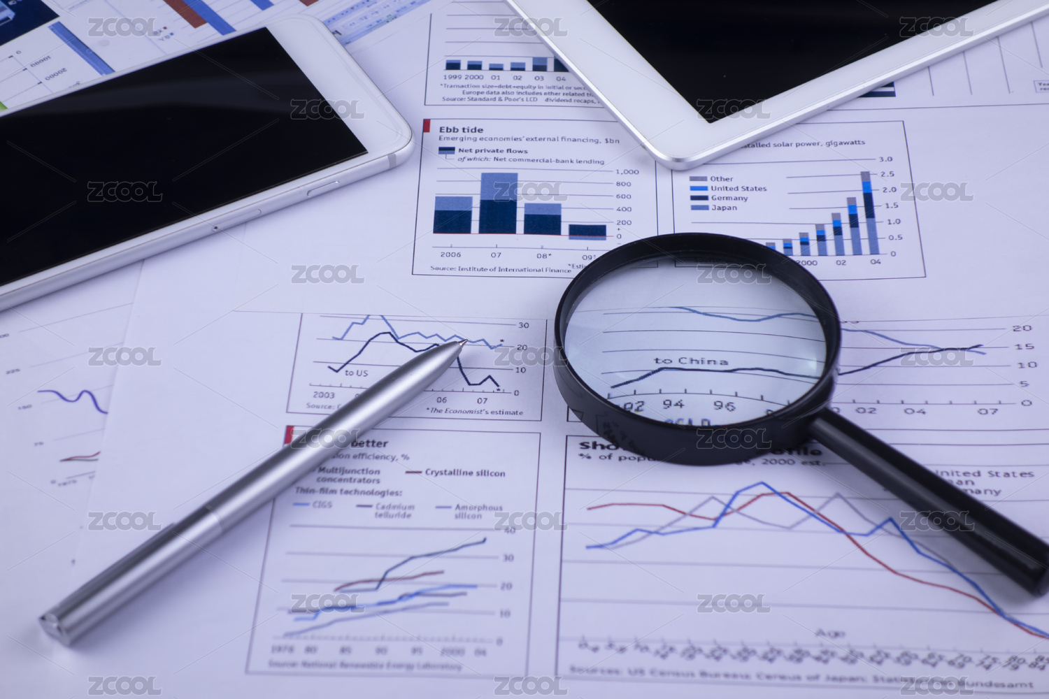 图表,商业,金融,财富,指数,报告,报表,平板电脑,放大镜,计算器