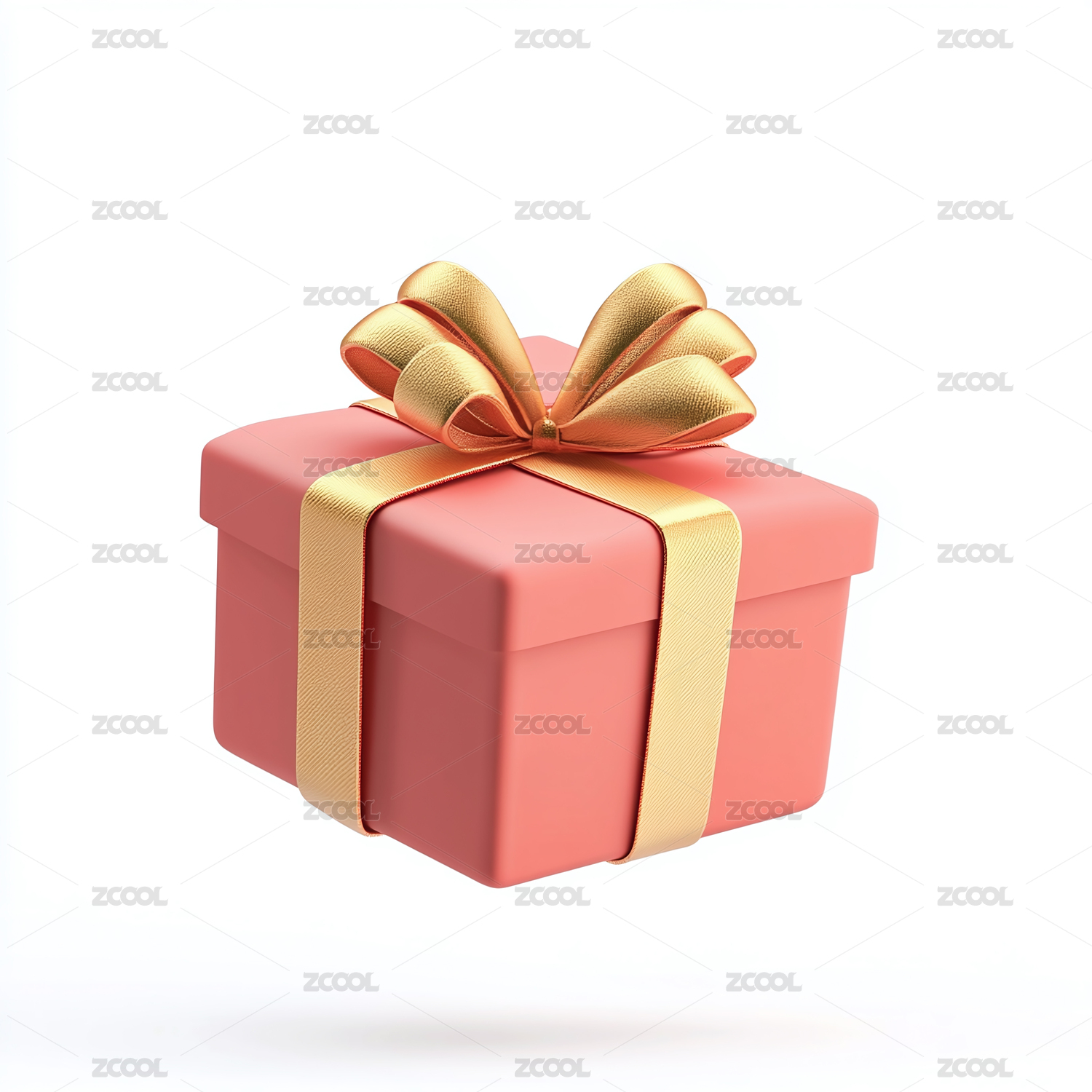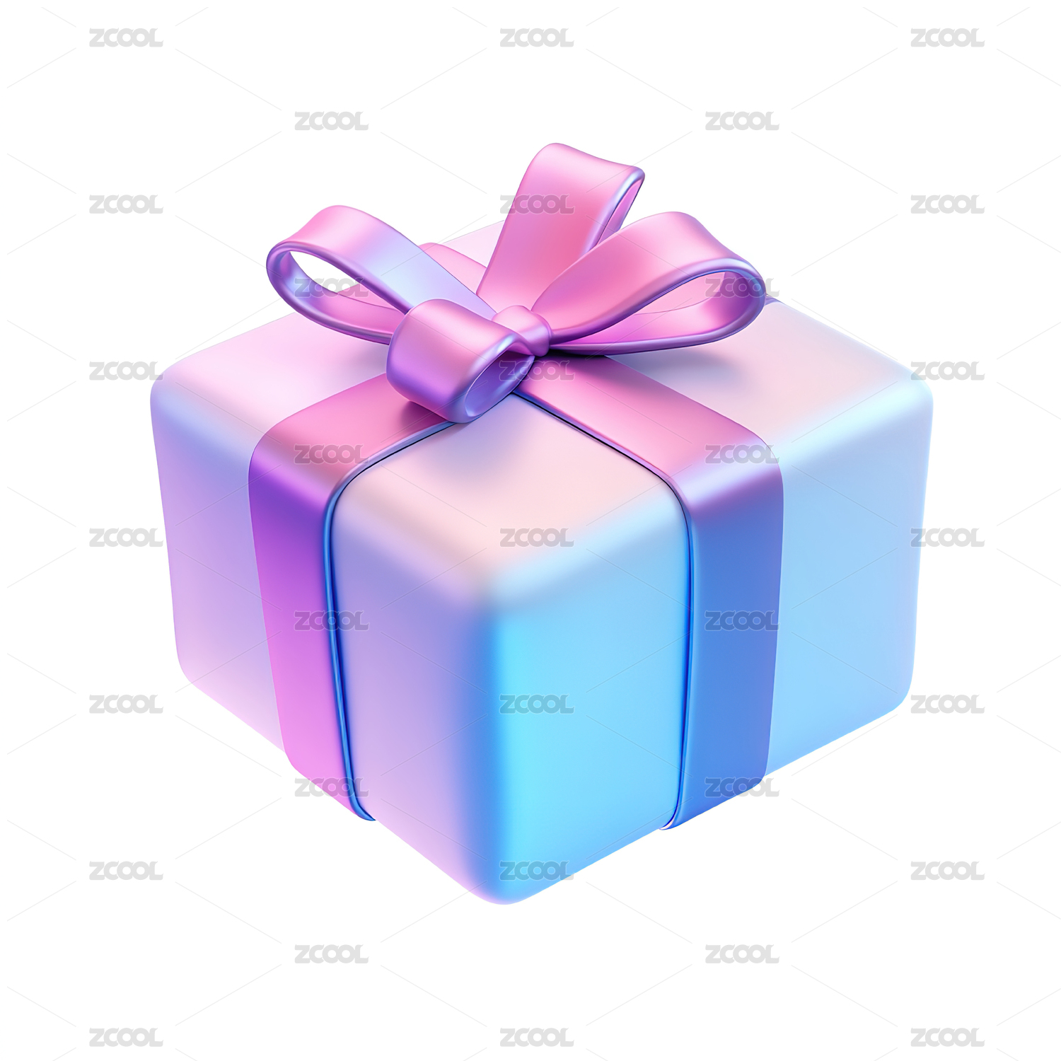 3D渲染绑着蝴蝶结渐变粉色情人节可爱礼盒
