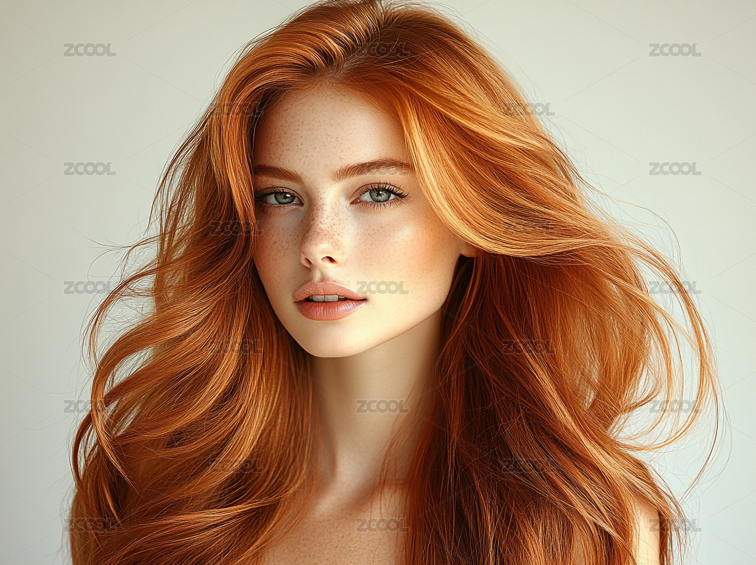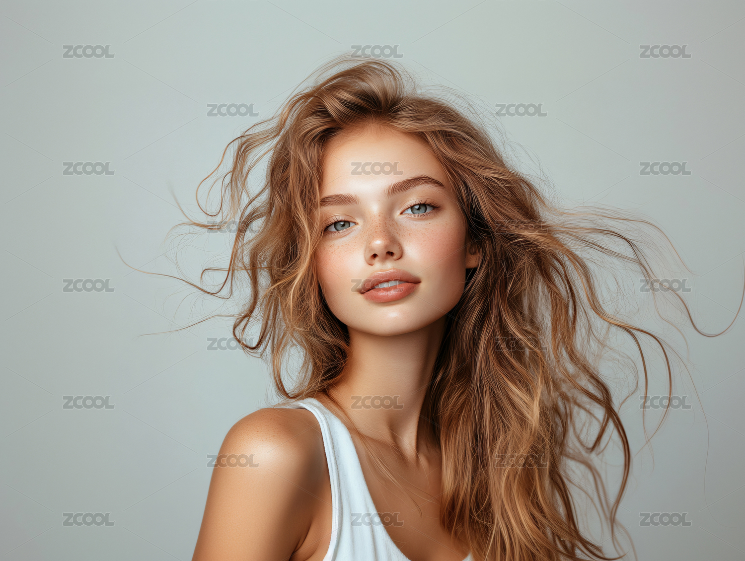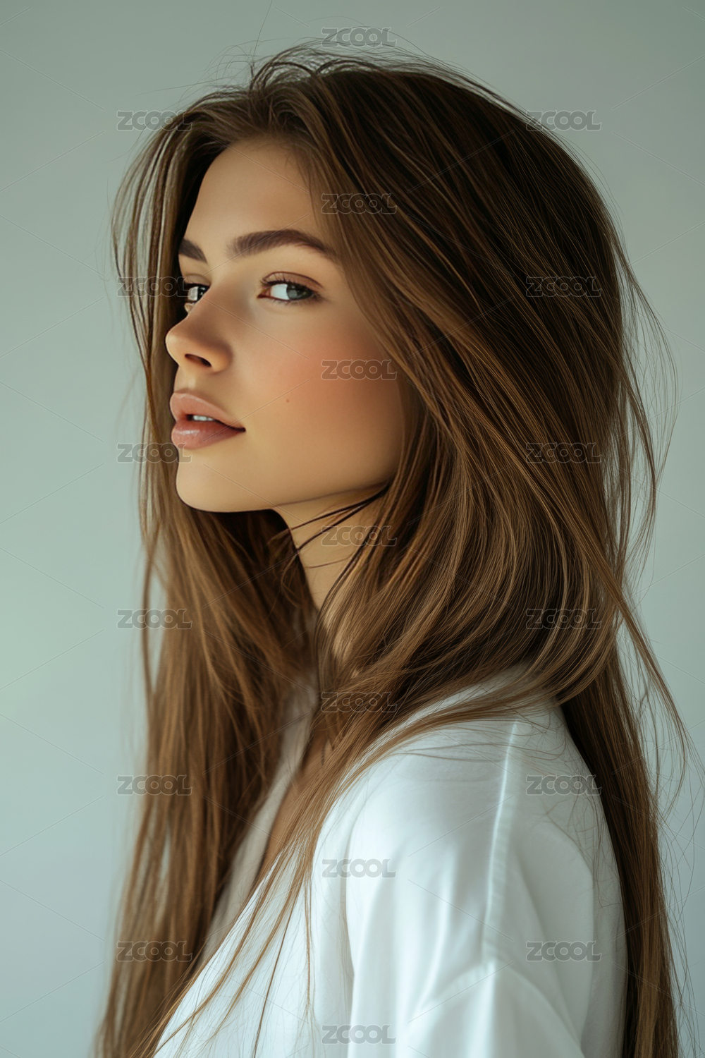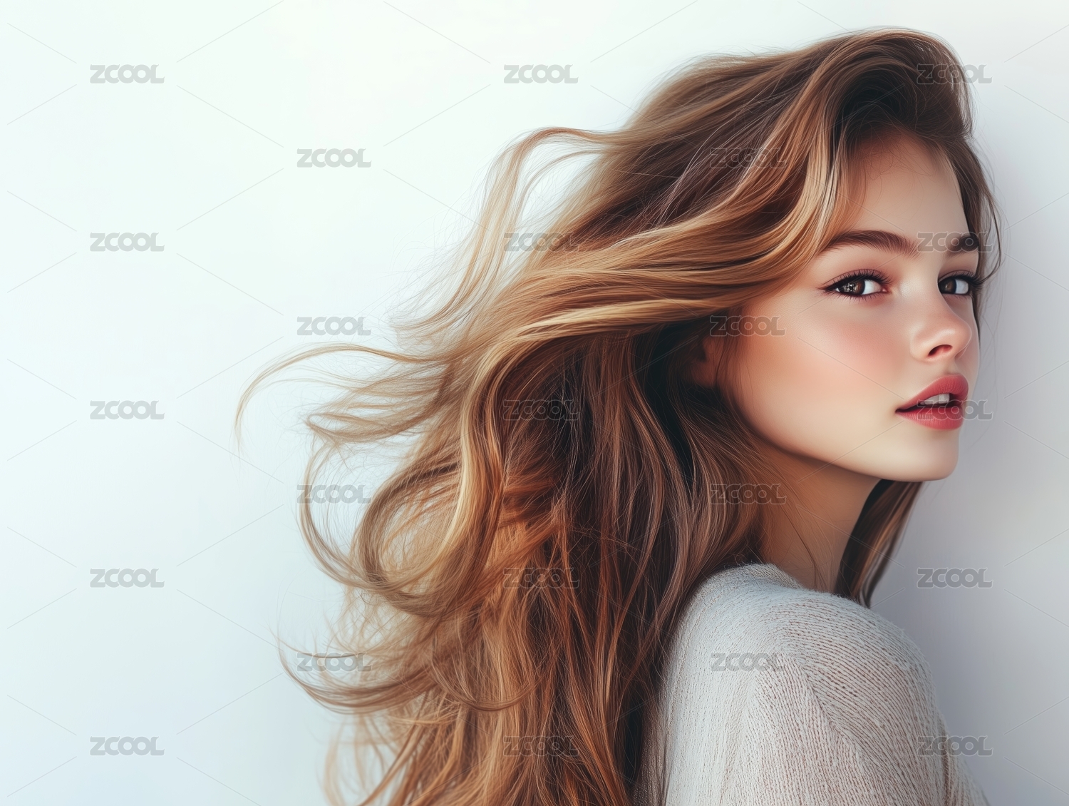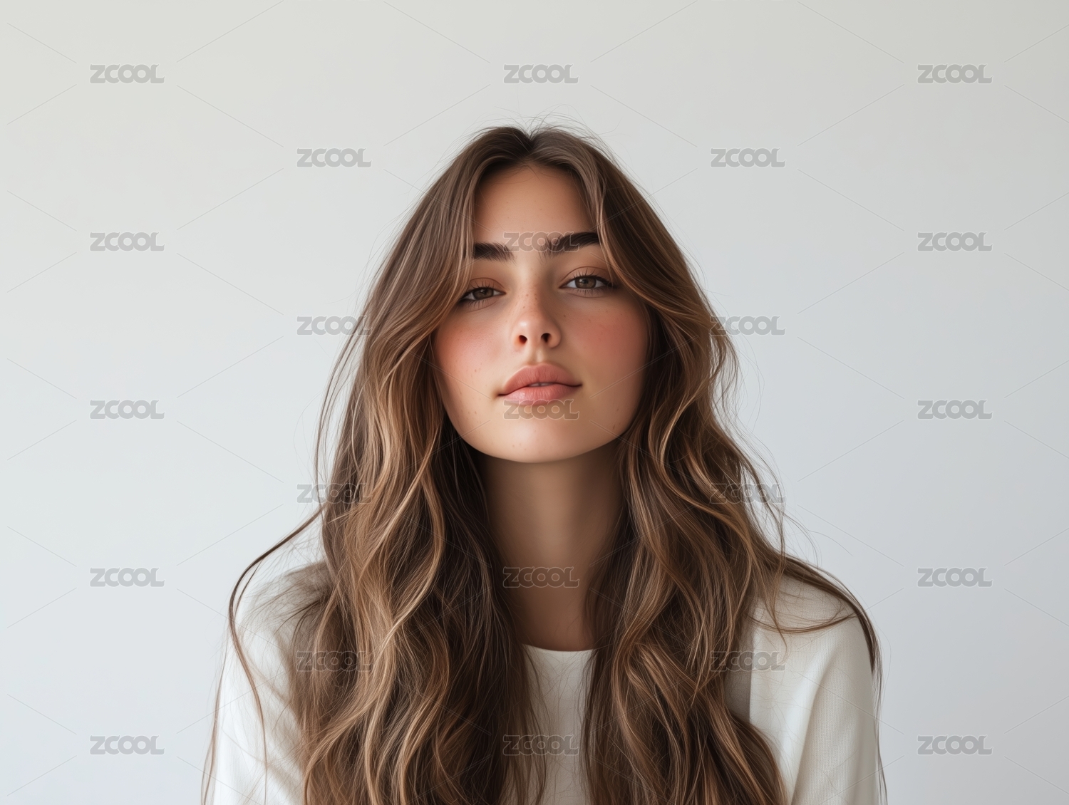 白色背景中的欧美长发美女