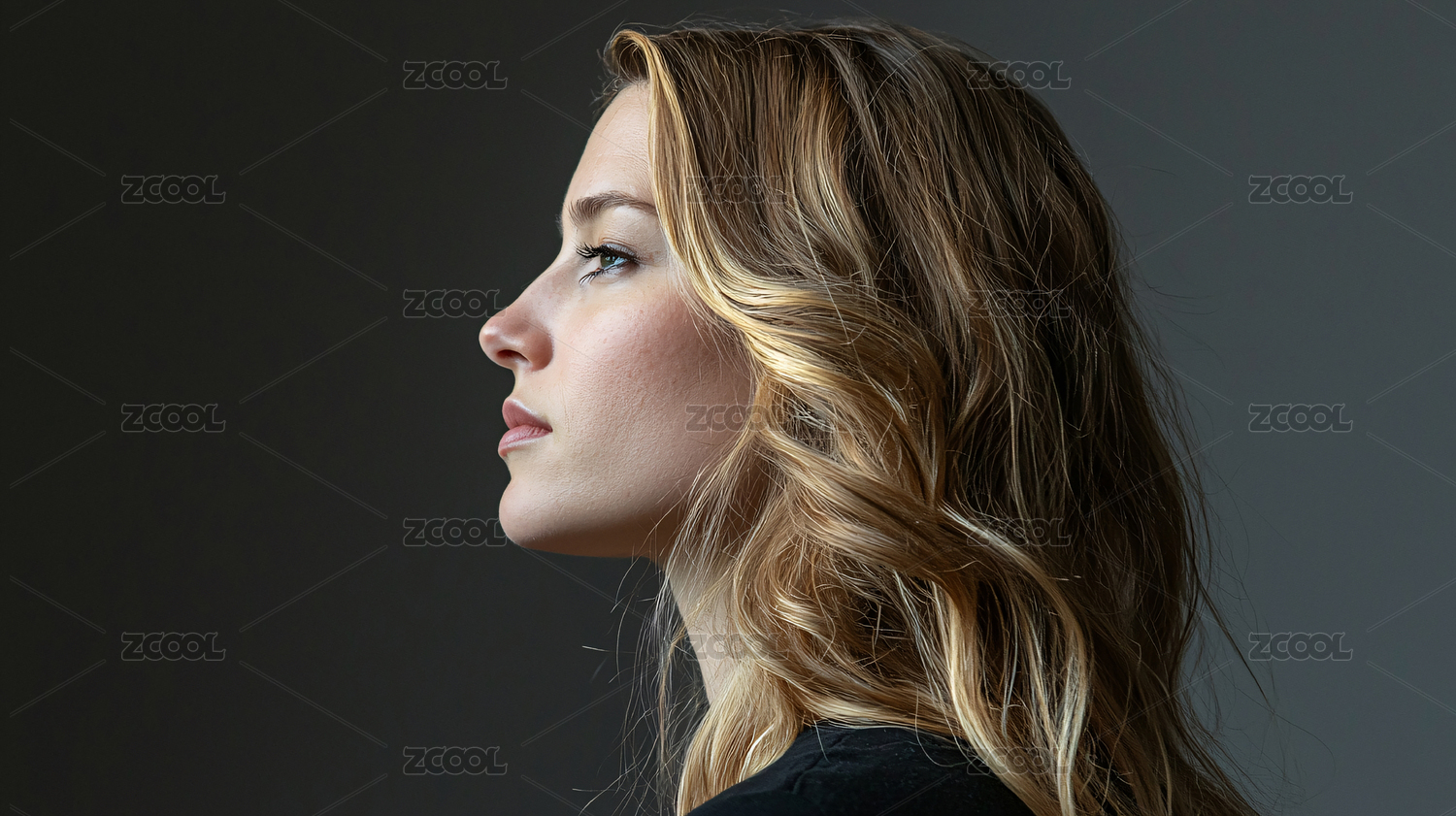 黑色背景中的金发女孩
