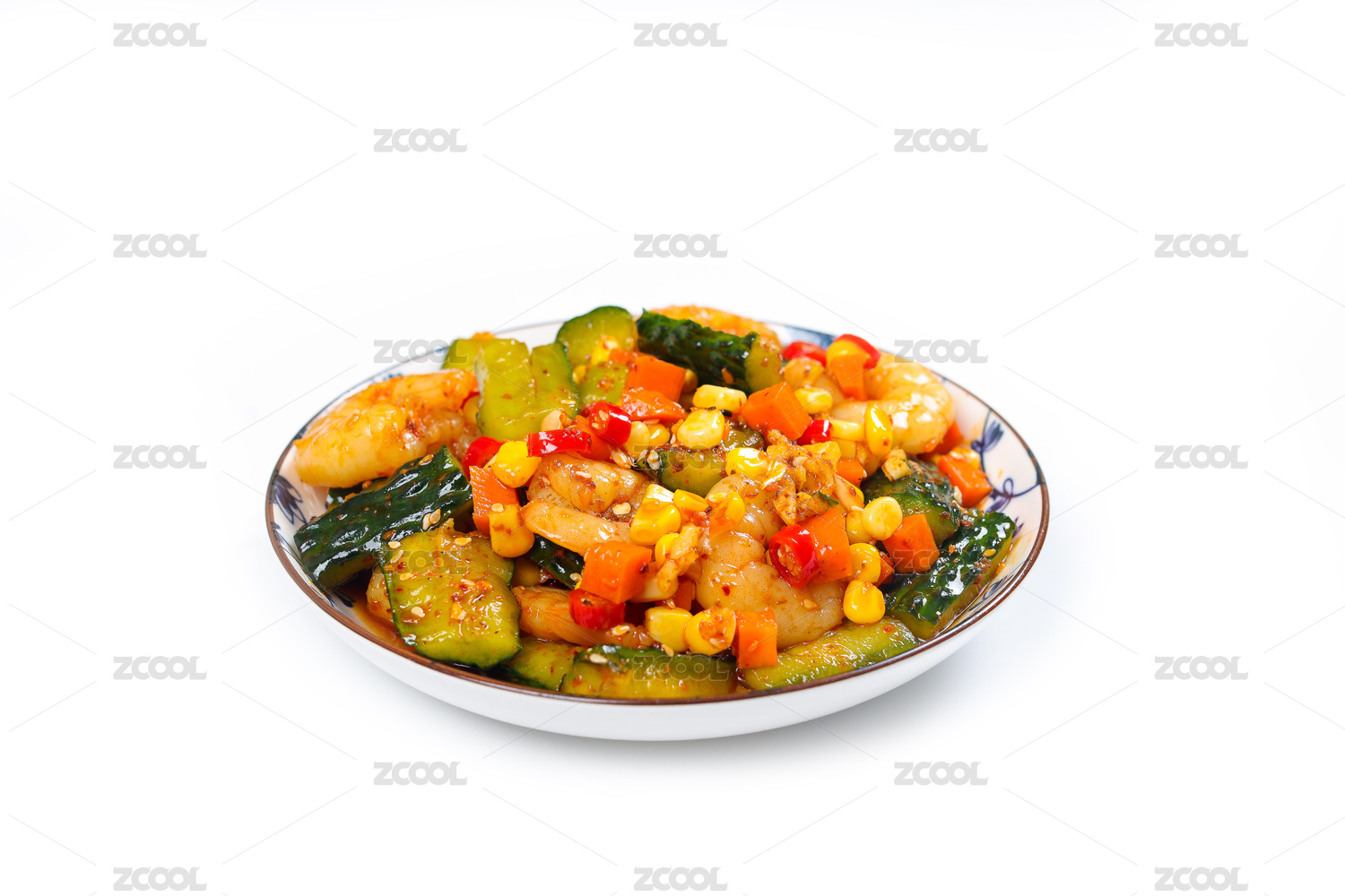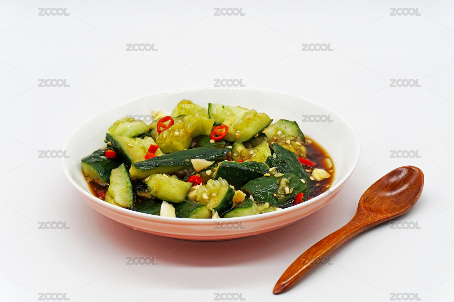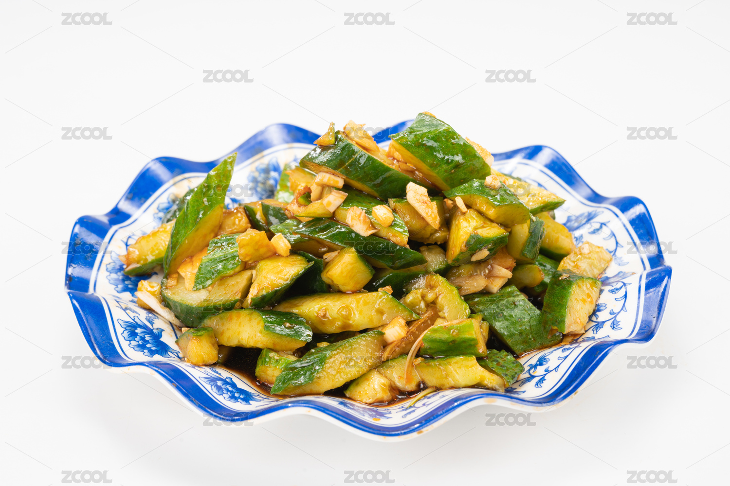 白色背景中的一盘凉拌青瓜