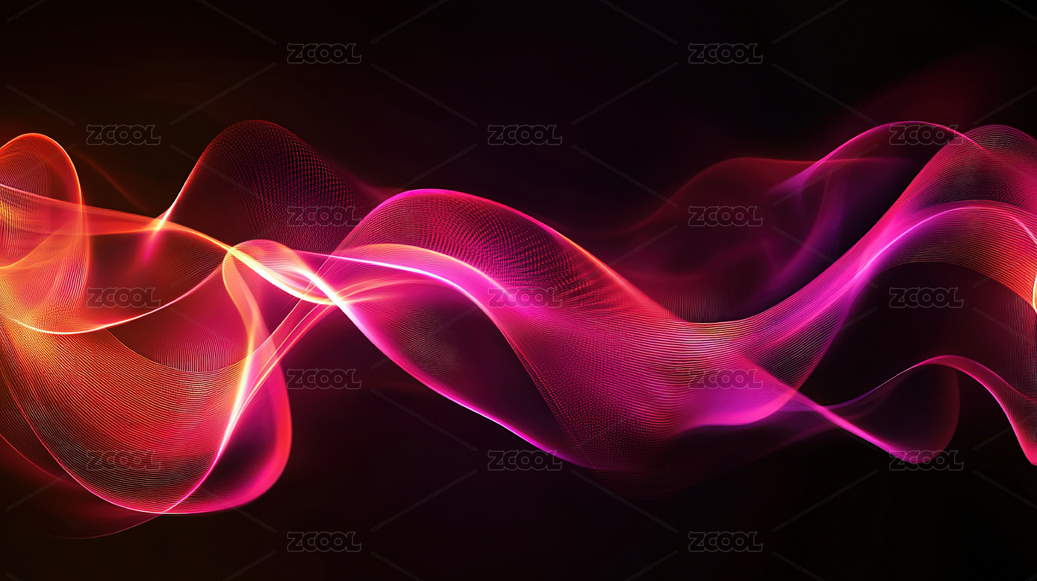 粉色光线在黑色背景中流动抽象艺术
