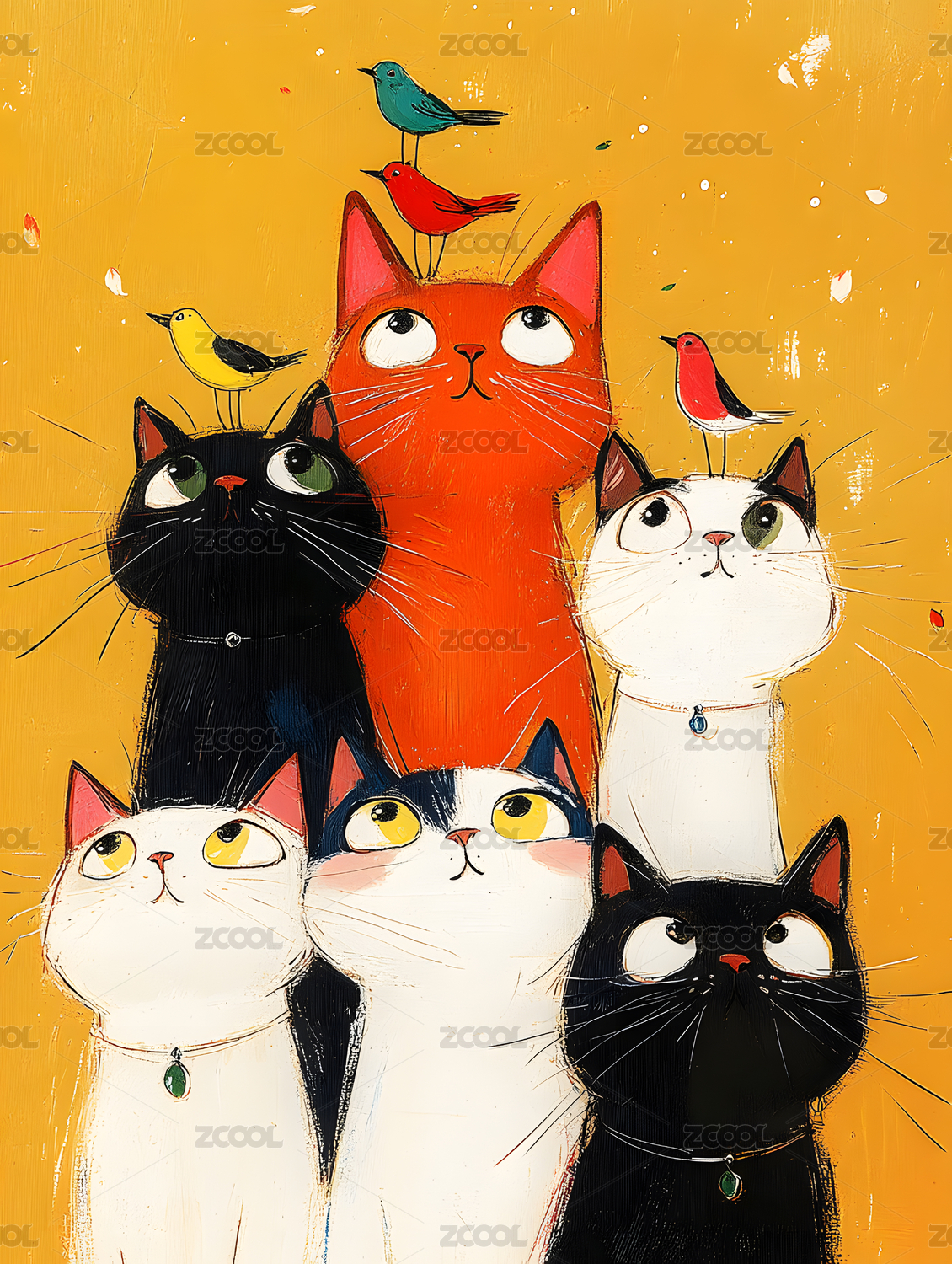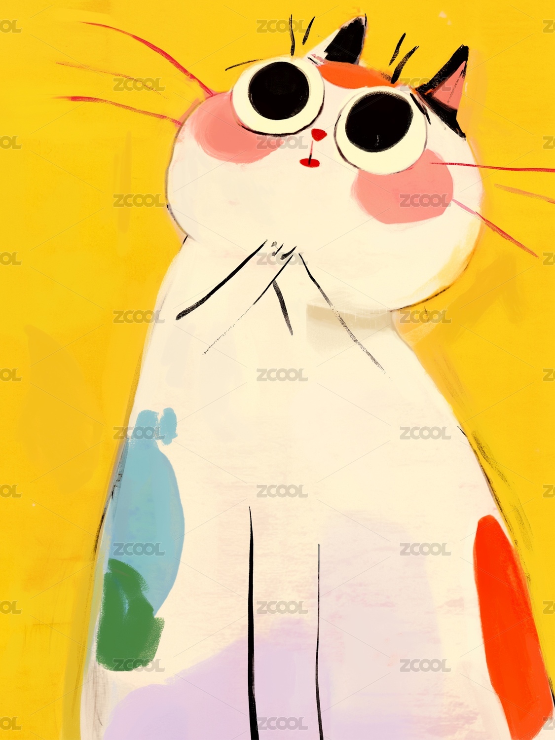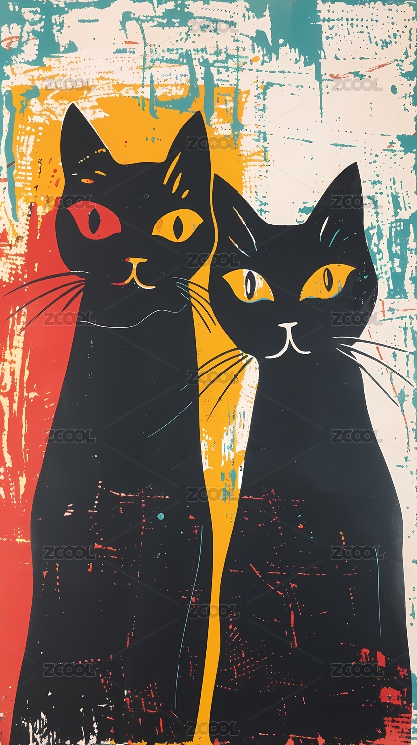 现代彩色猫猫油画插画背景海报抽象装饰画
