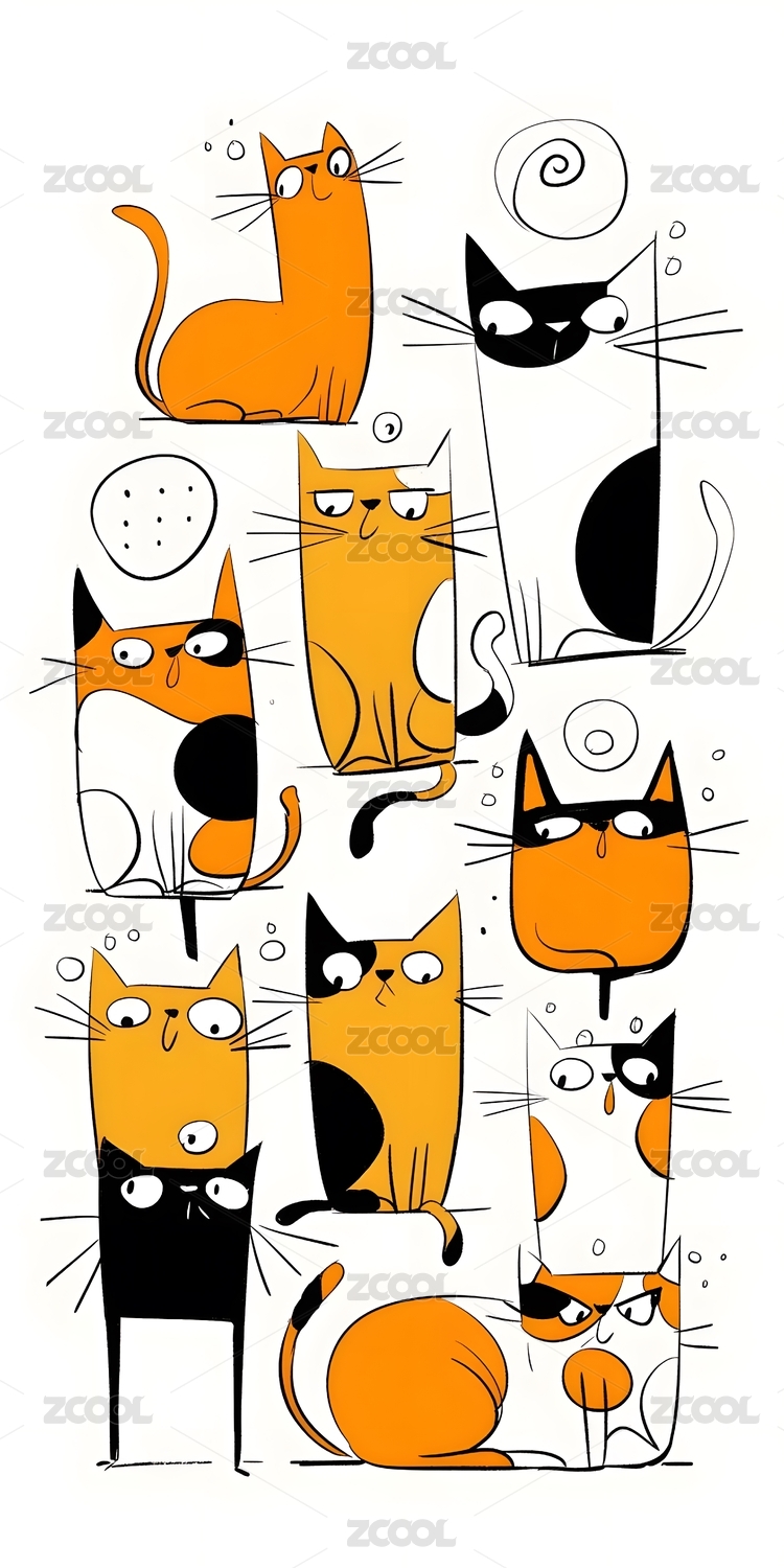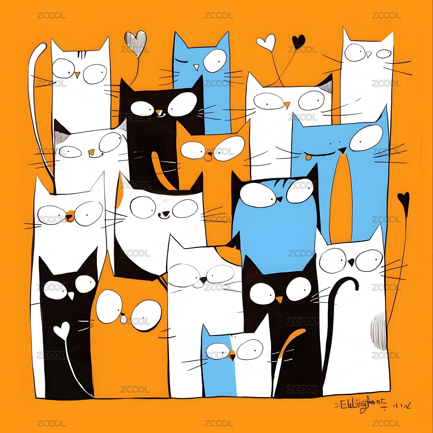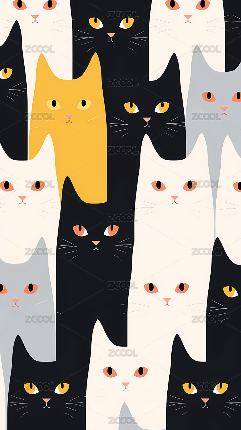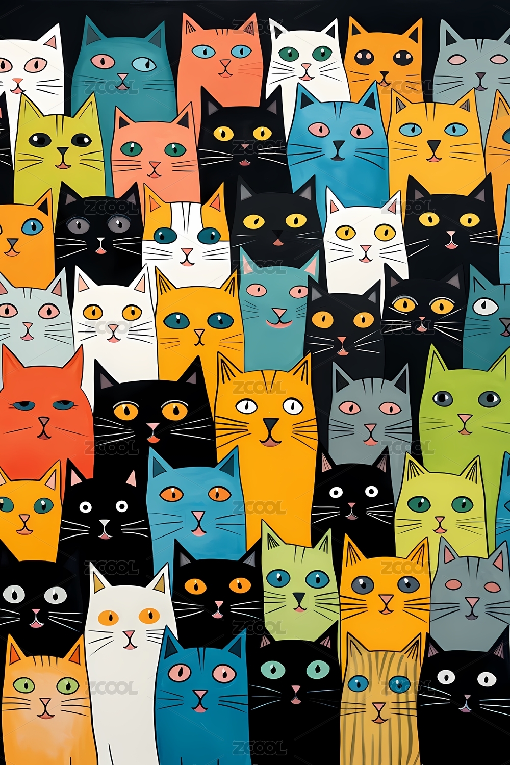 数码波西米亚猫猫图案装饰抽象图形海报背景