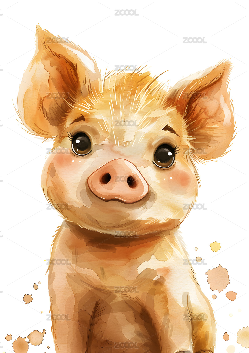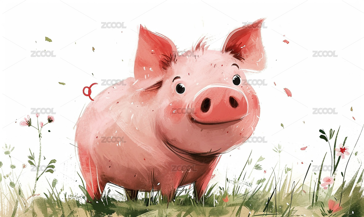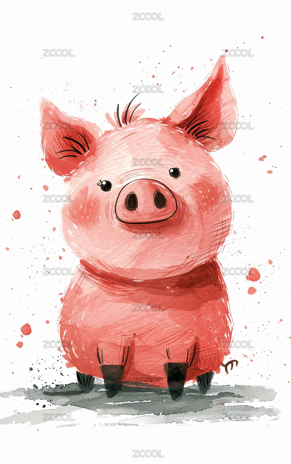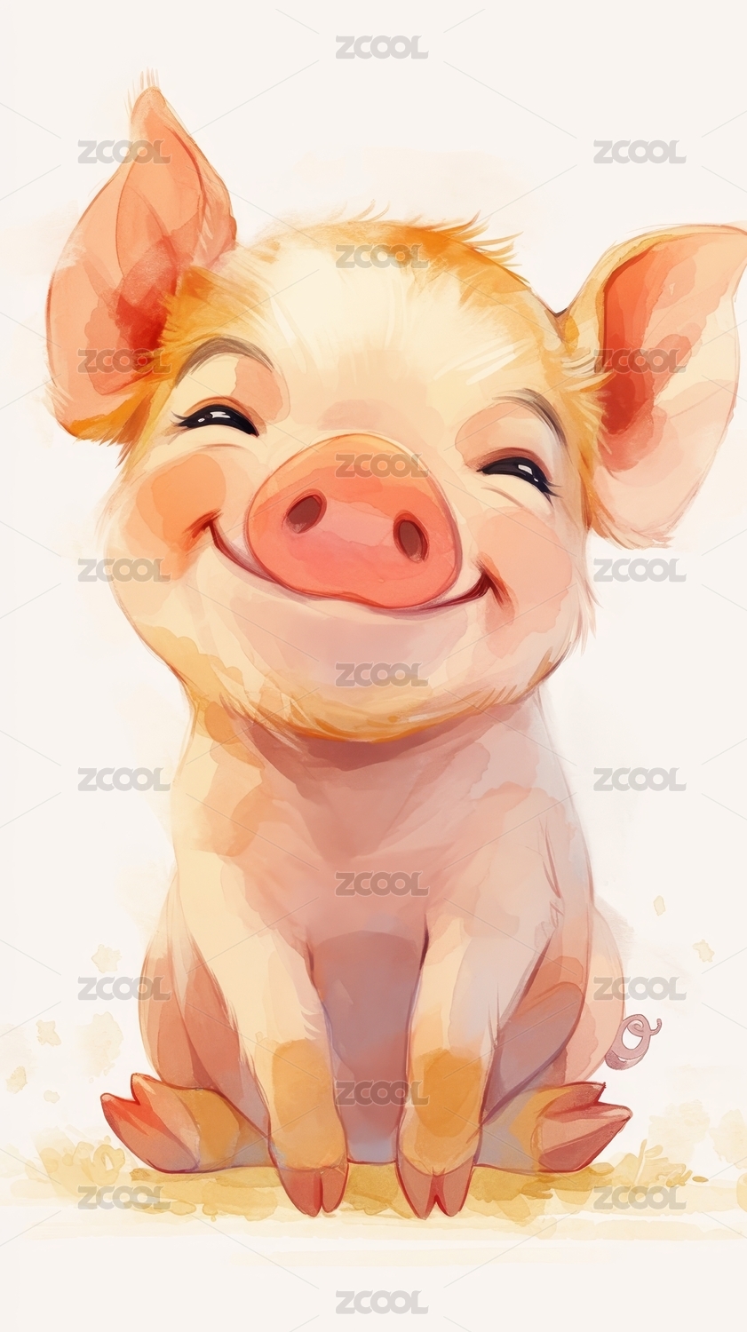 水彩插画一只小猪