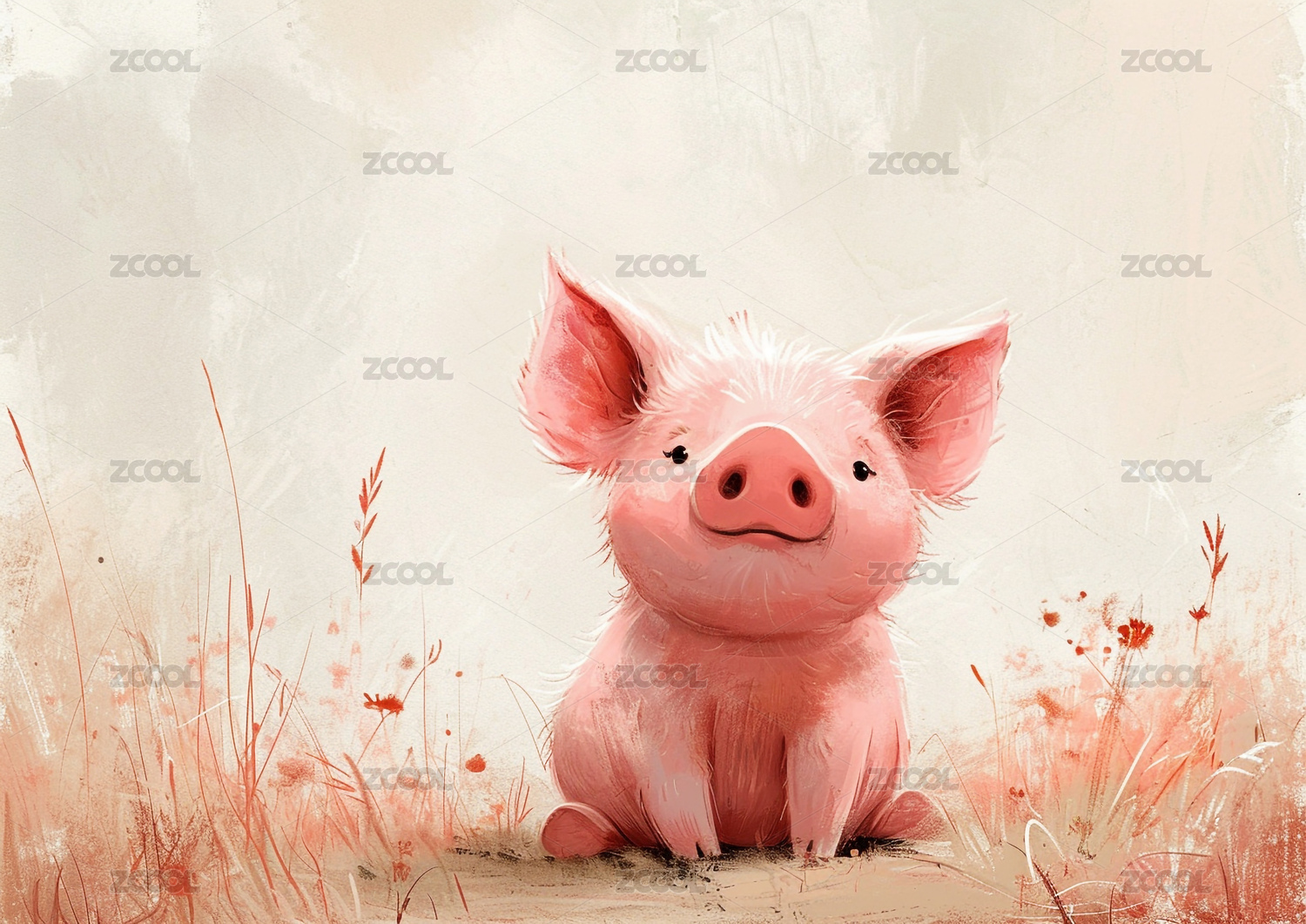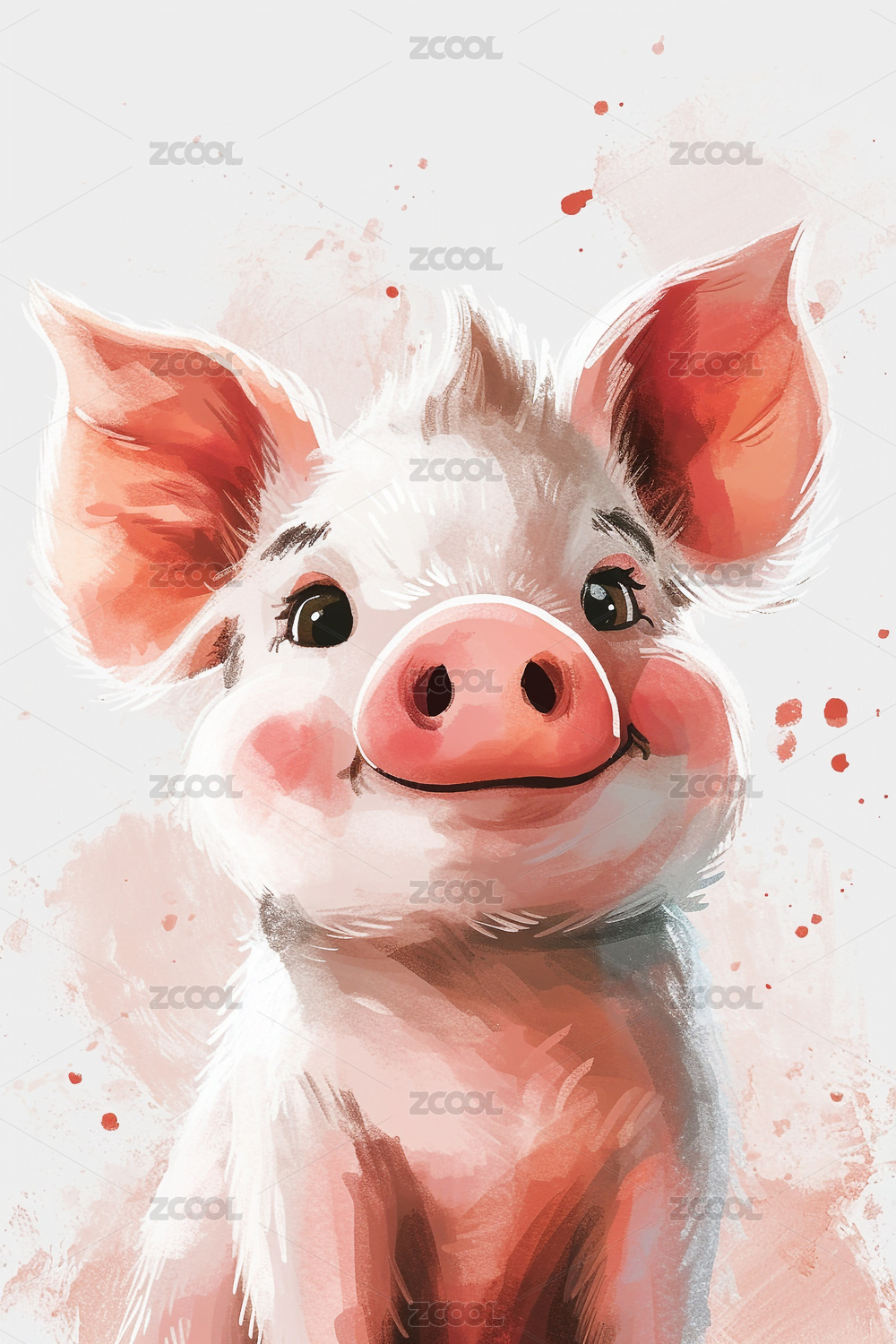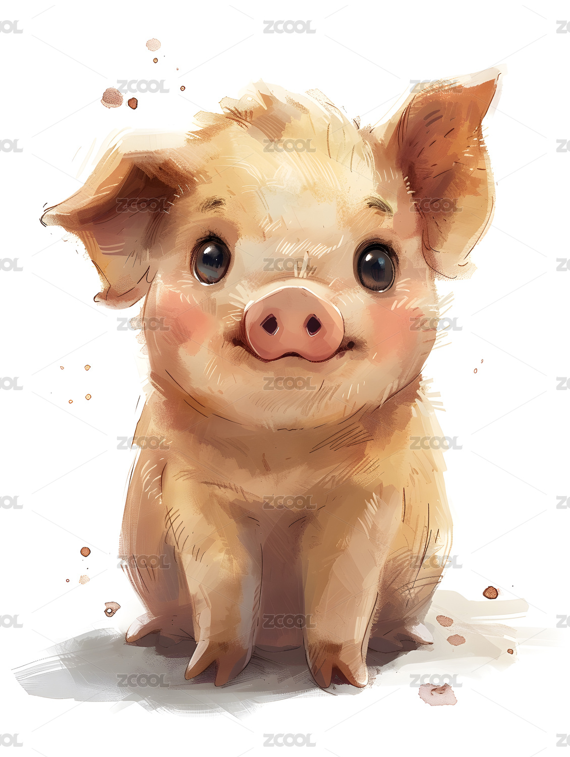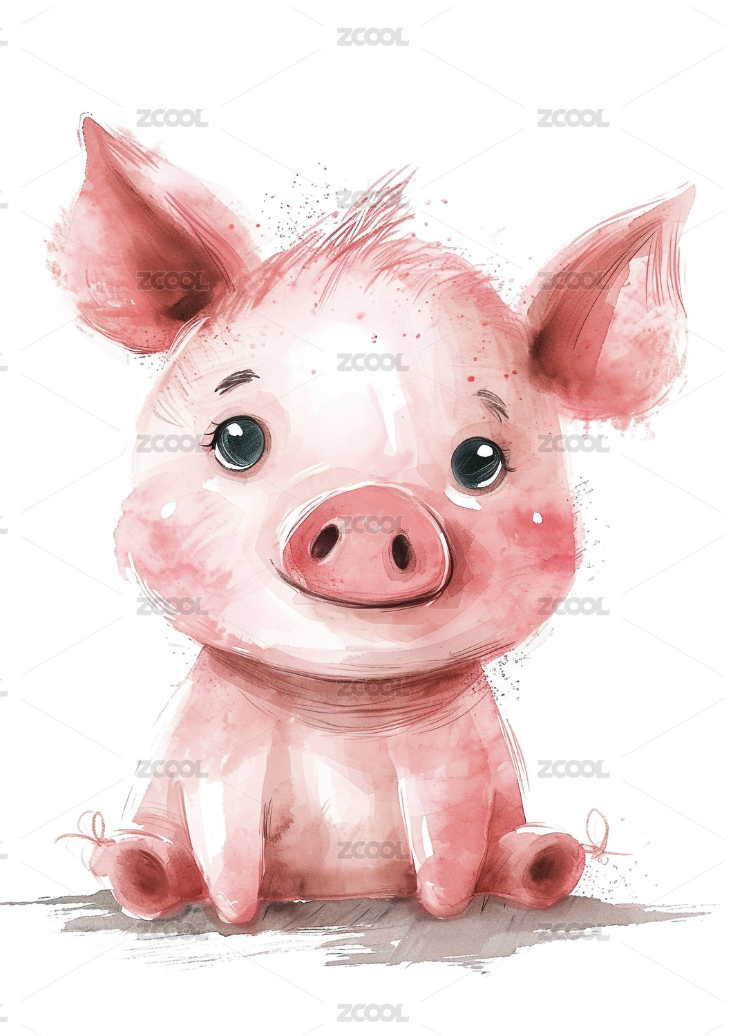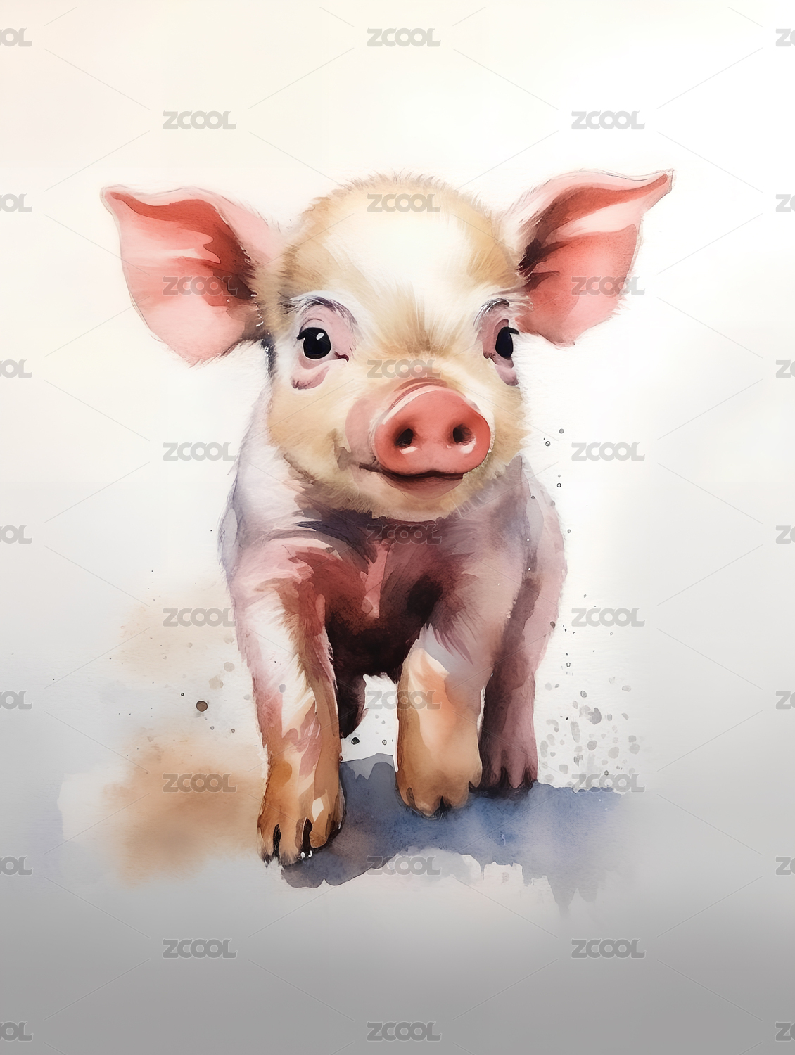 水彩插画一只小猪