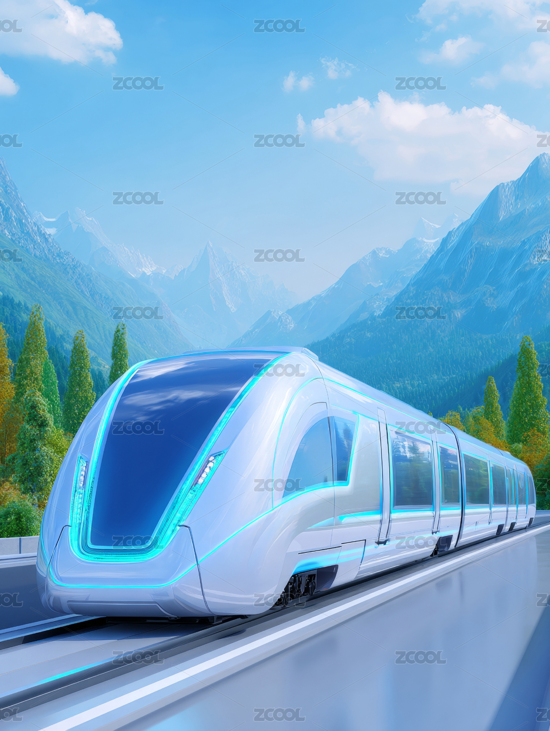 未来高铁穿越山景