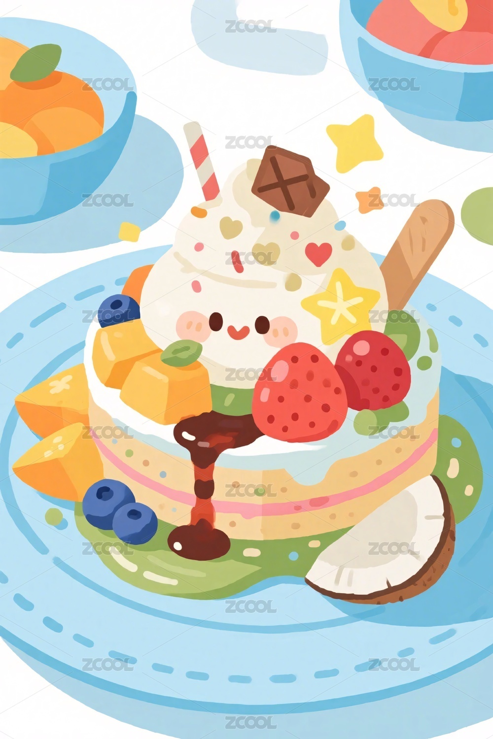 可爱卡通甜品插画