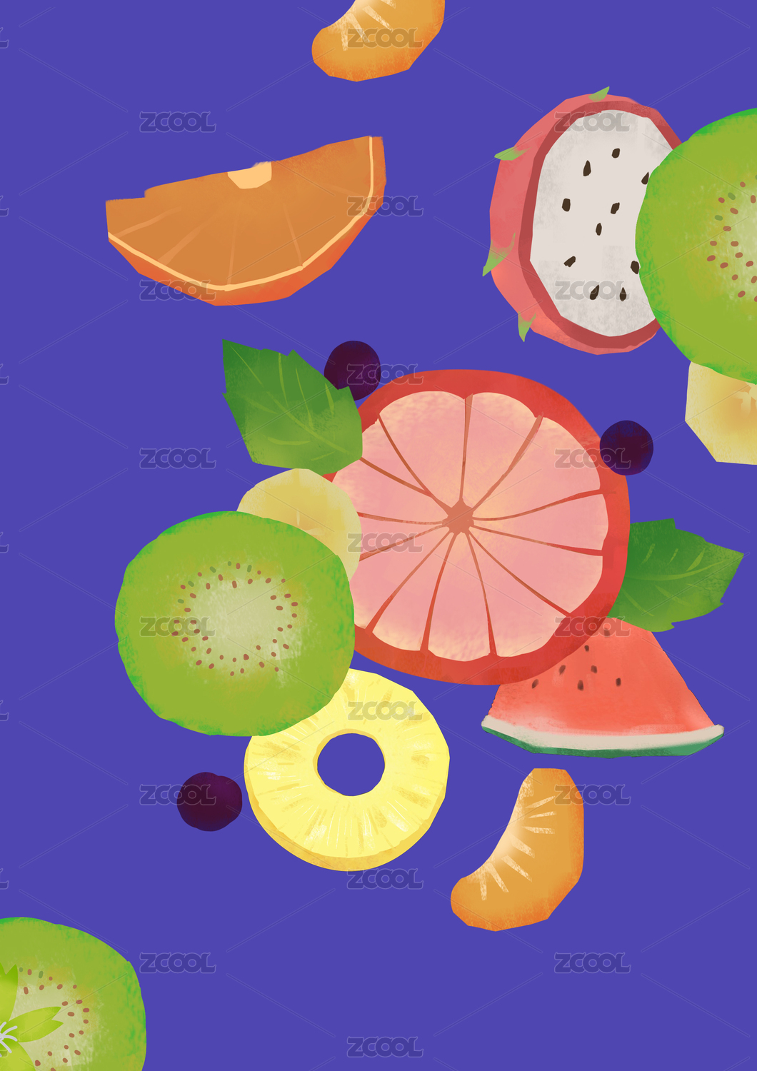 各种水果堆放出来的小清新插画