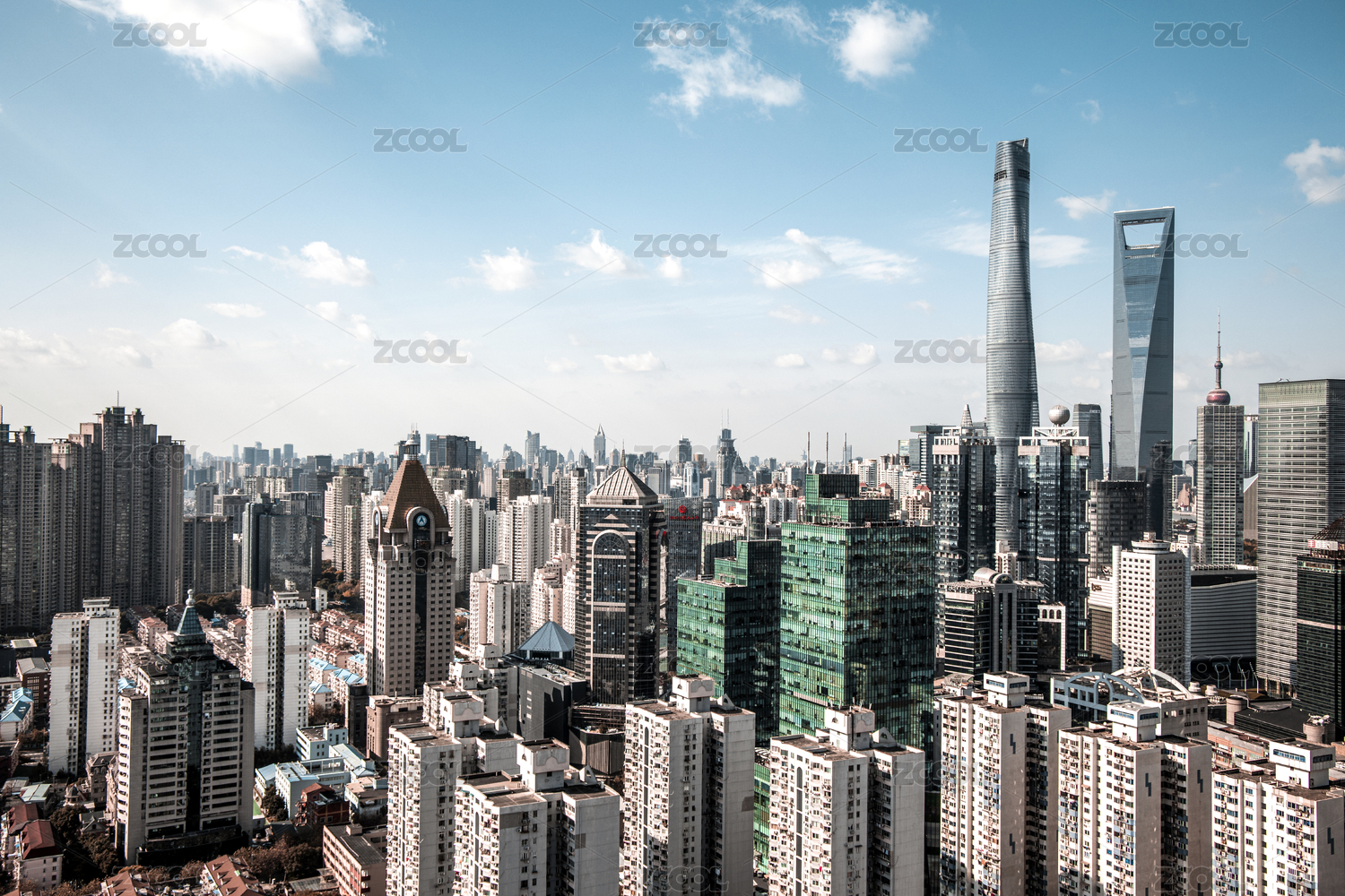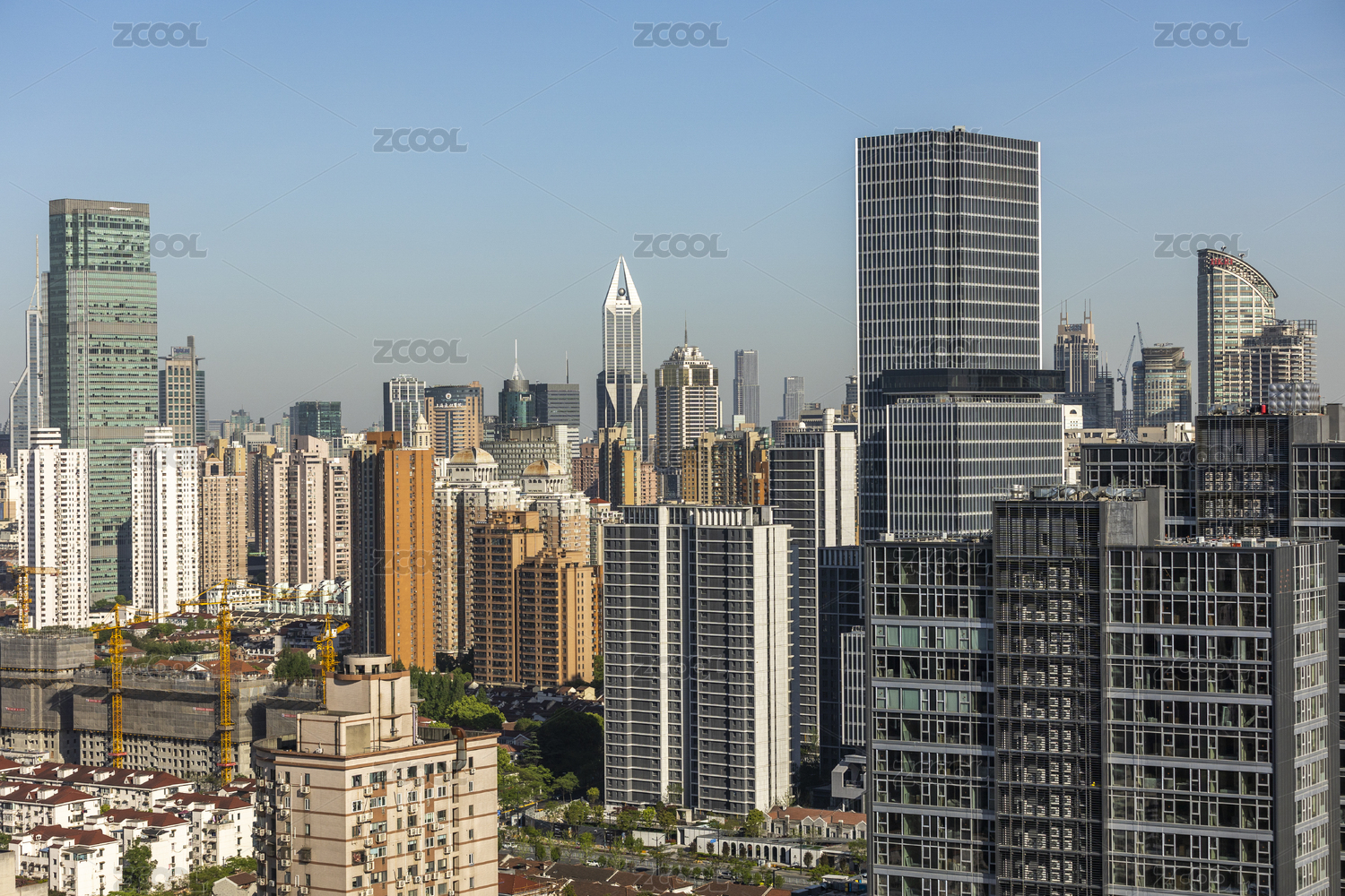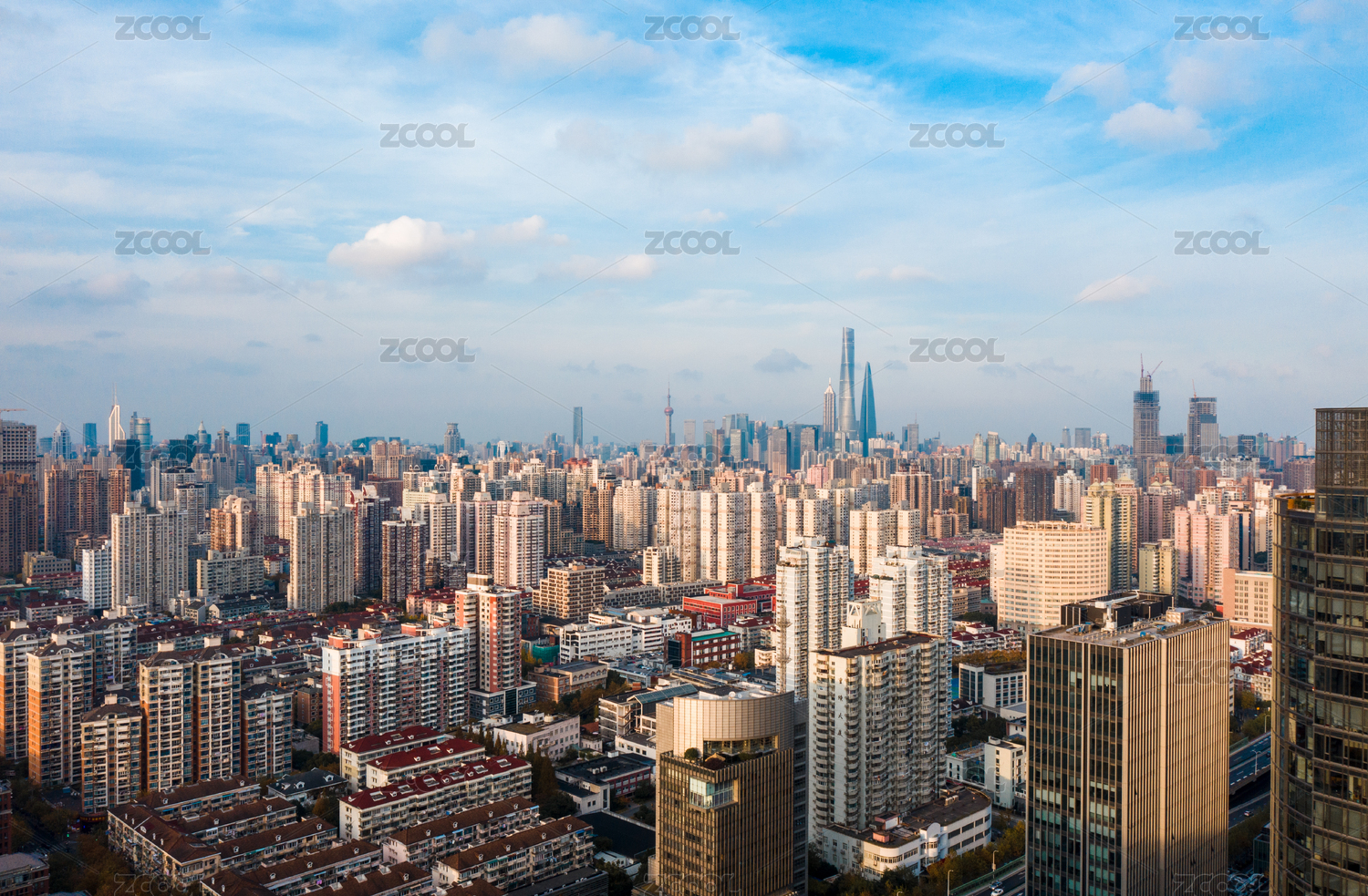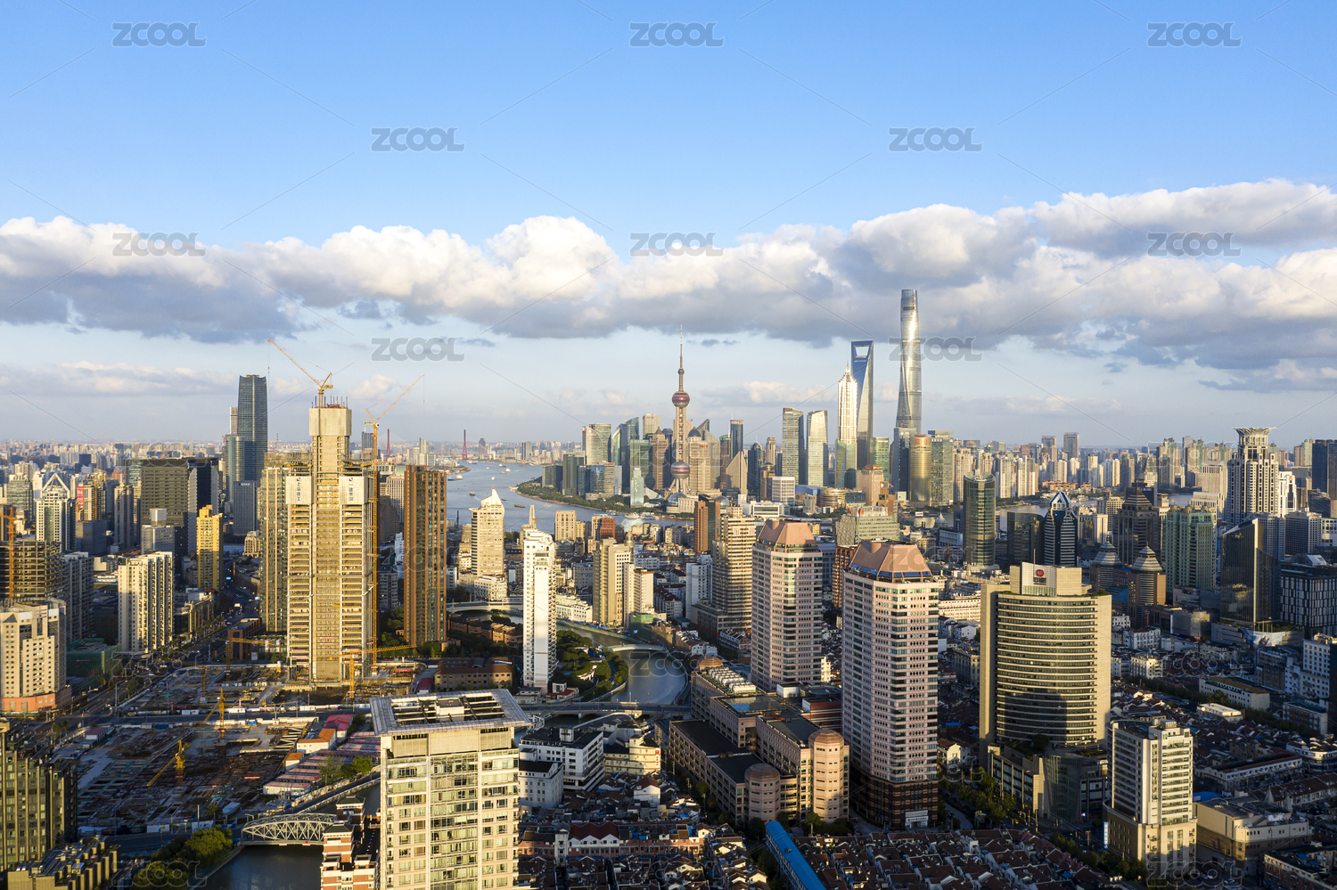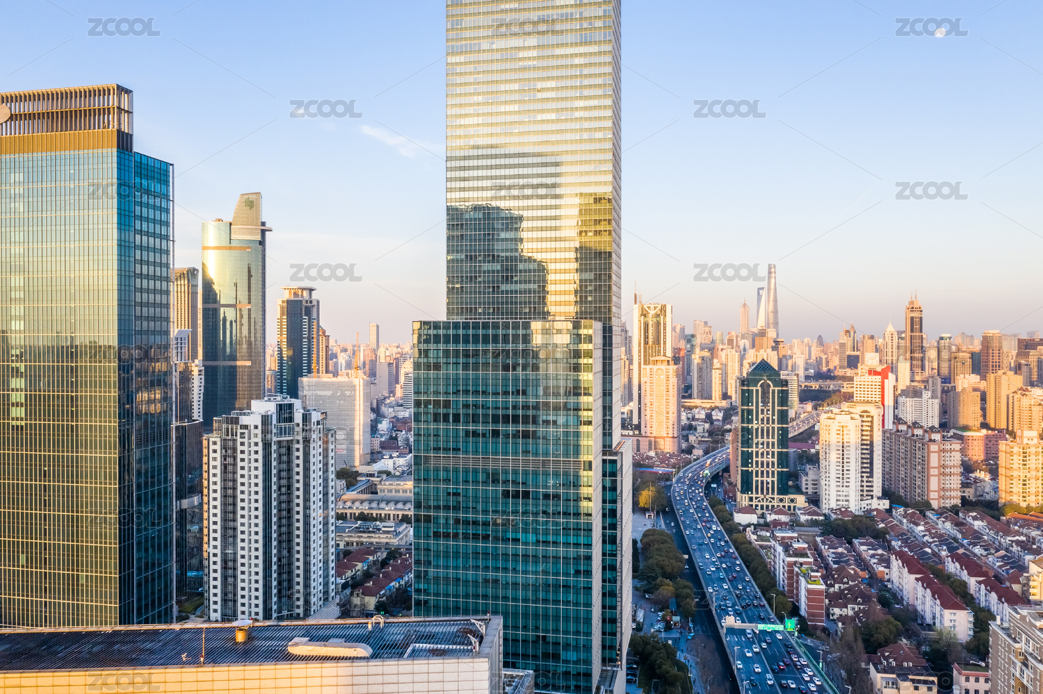 航拍上海陆家嘴浦西南京西路高楼建筑