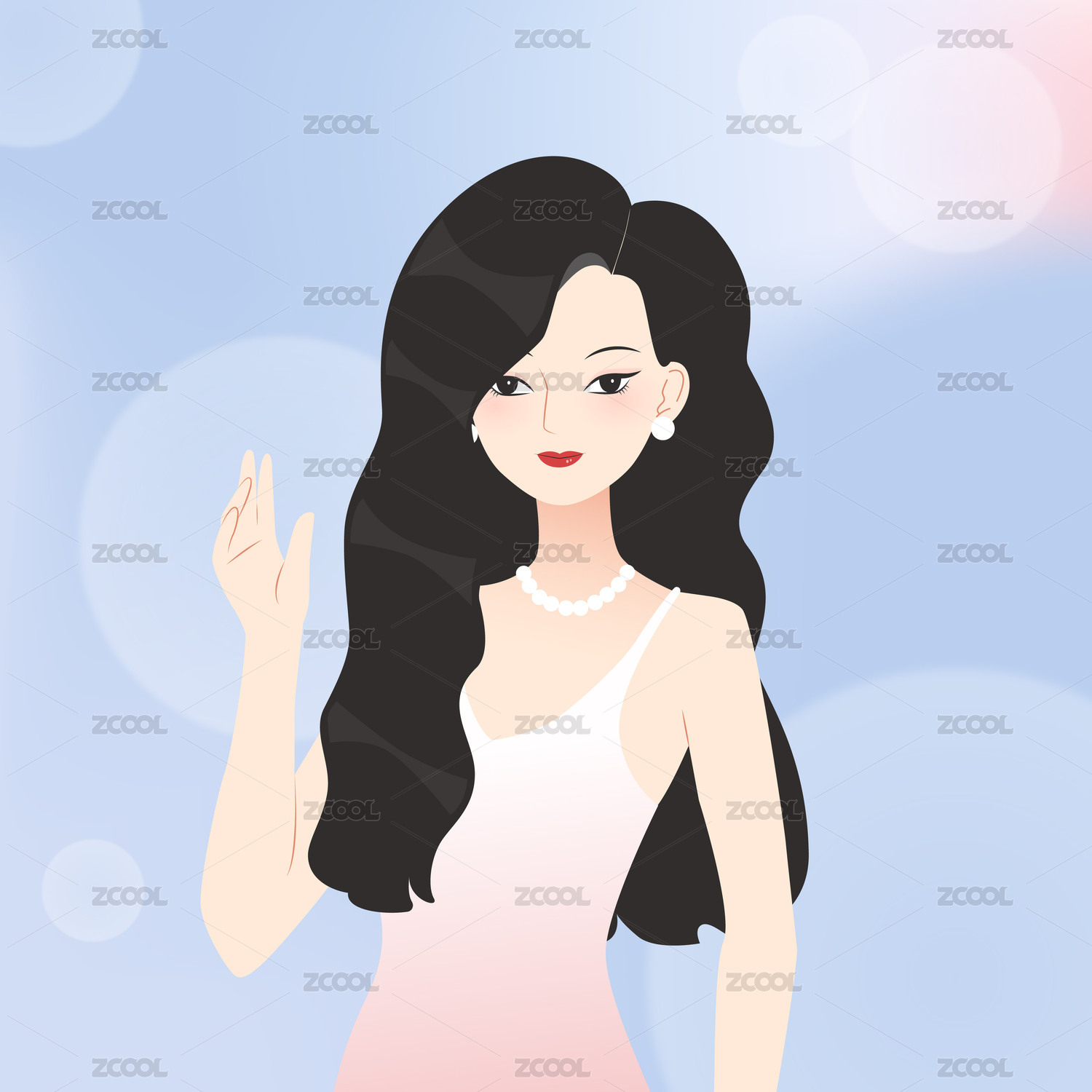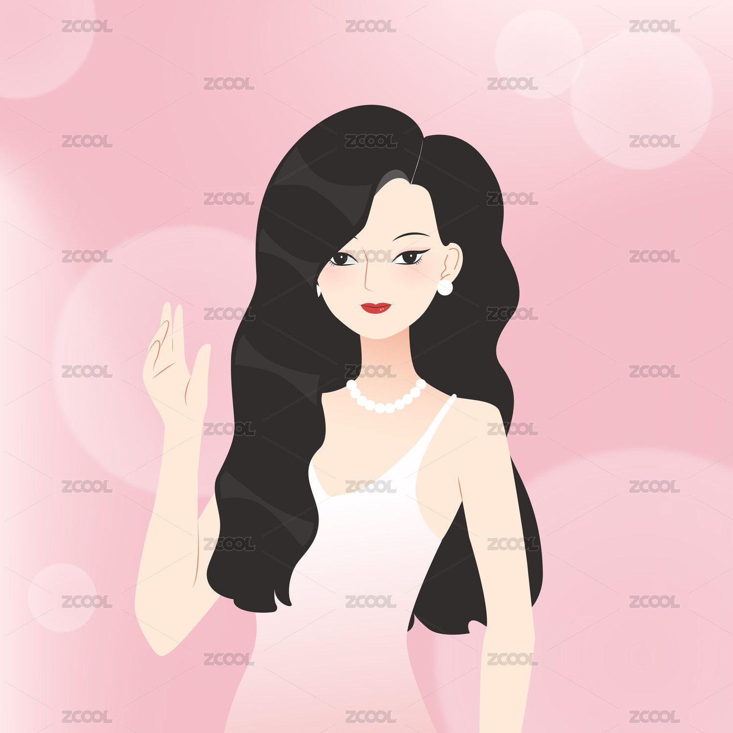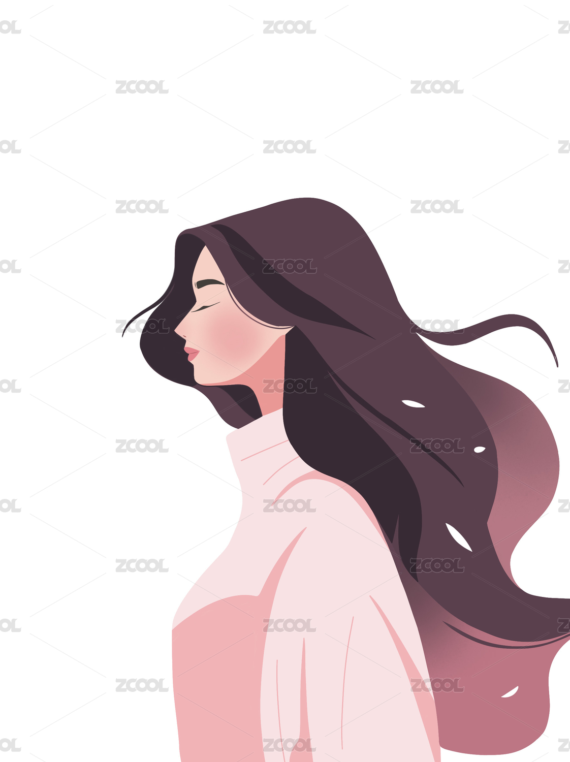 粉色长发女孩温柔唯美扁平风极简插画背景