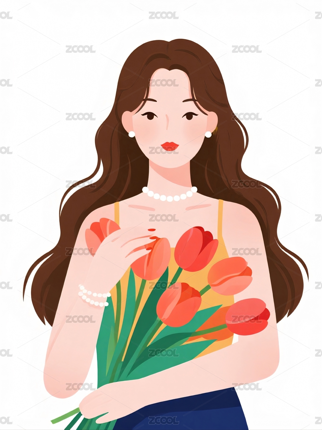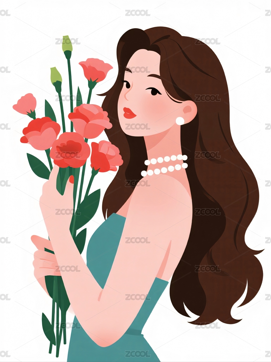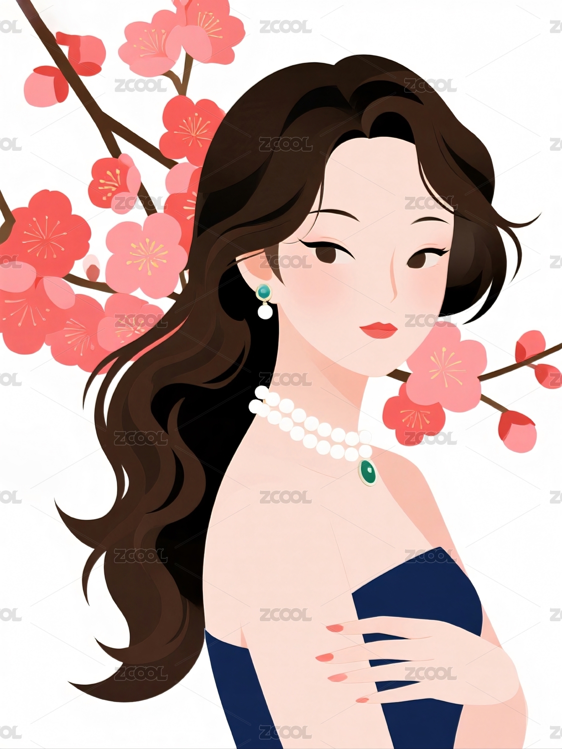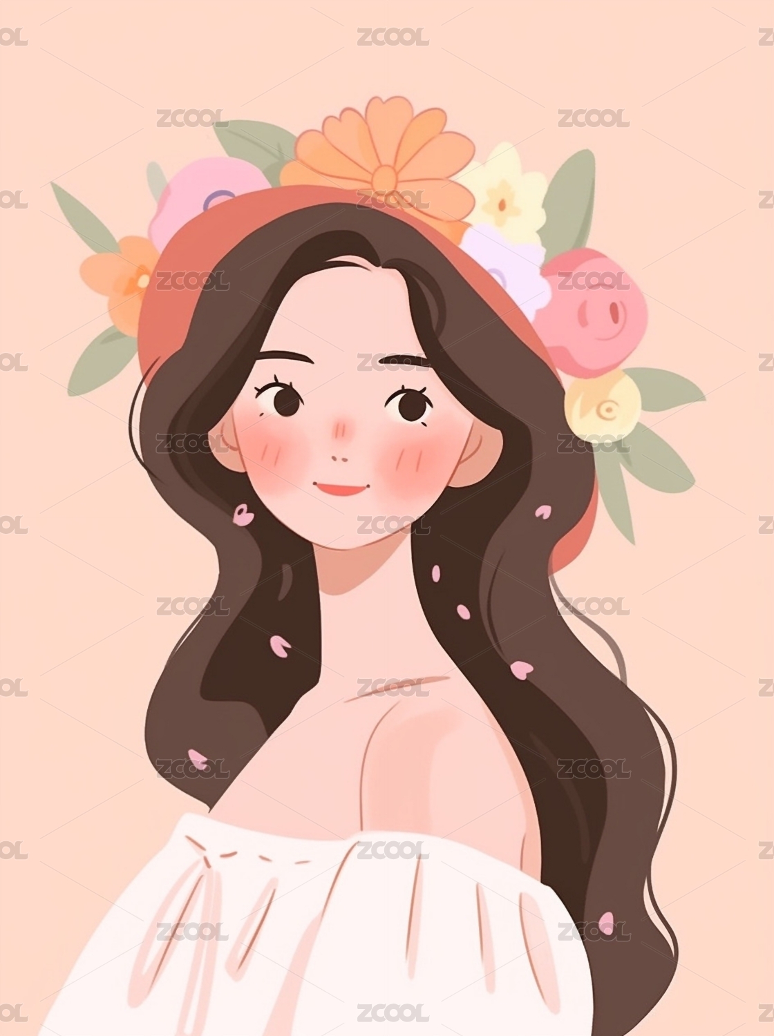 粉色长发女孩温柔唯美扁平风极简插画背景