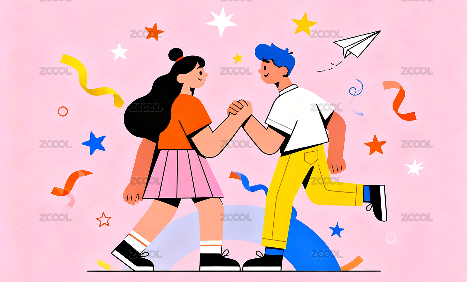 扁平风格情侣插画背景壁纸