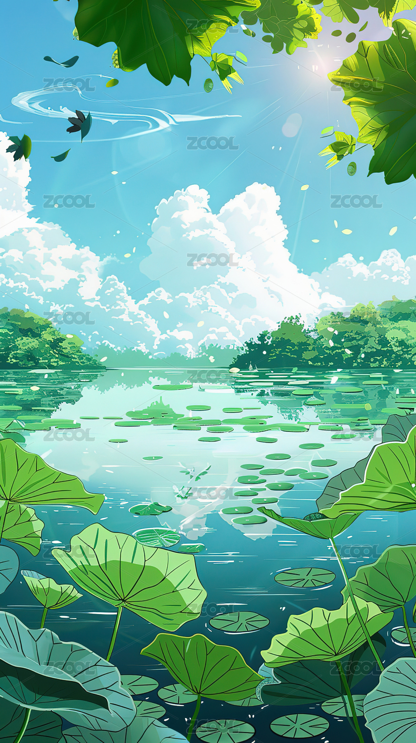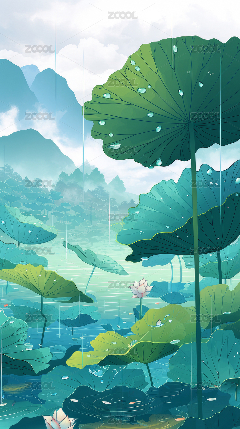 雨中荷塘插图背景