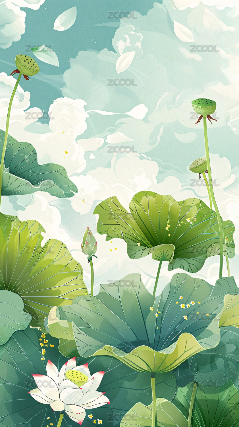 夏日清透荷花插画