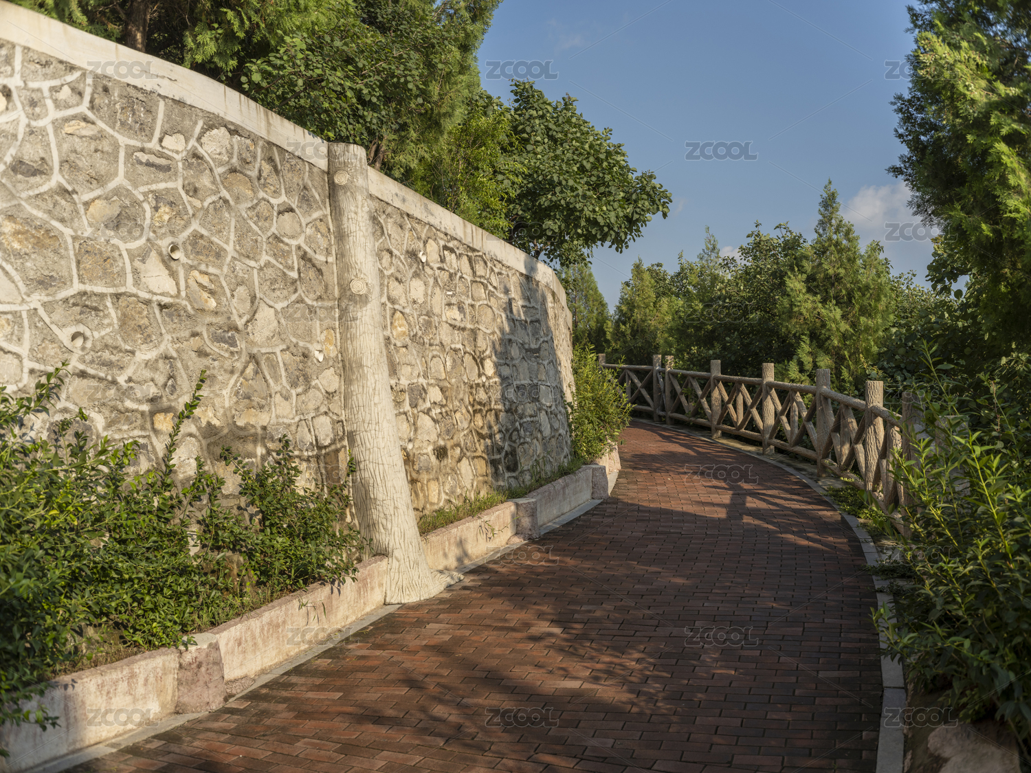 公园户外步行石头台阶绿植
