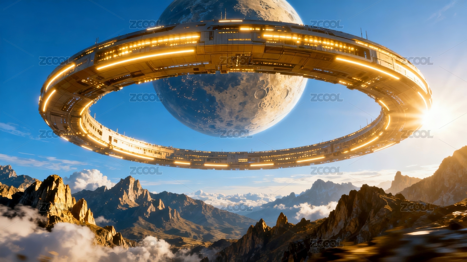 科幻蓝紫色未来城市圆形展台插画海报背景