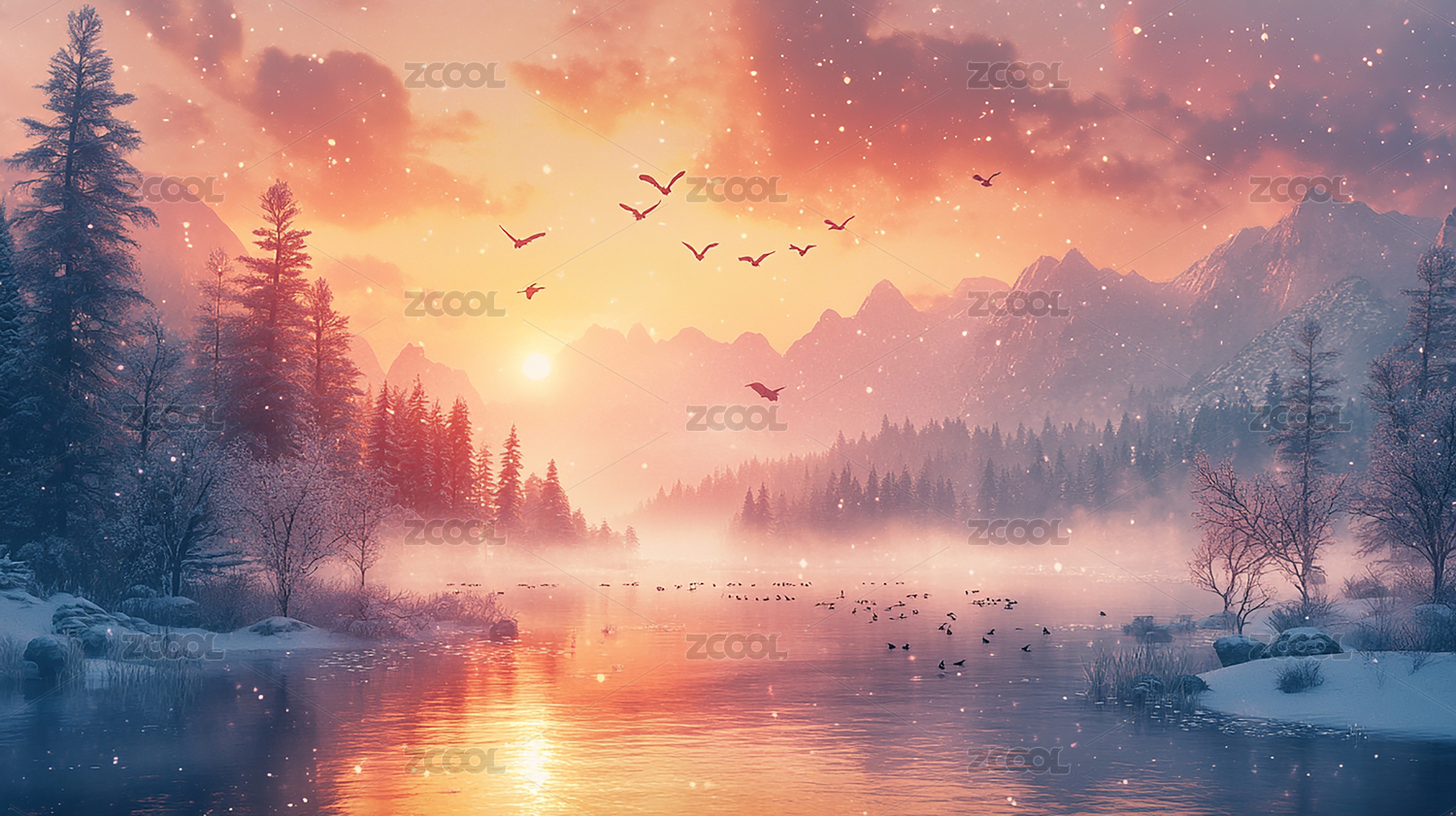 云,宁静,天空,水,飞鸟,日落,夕阳