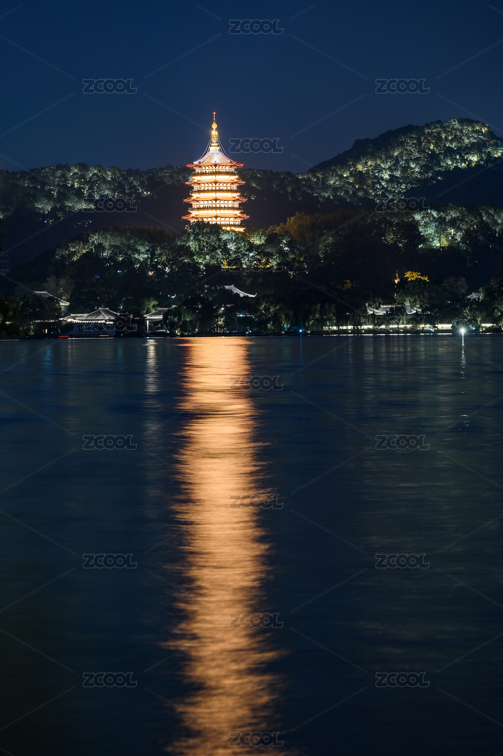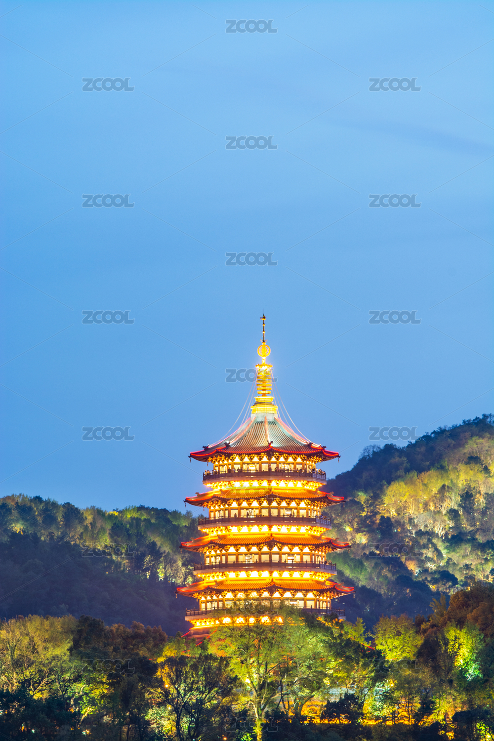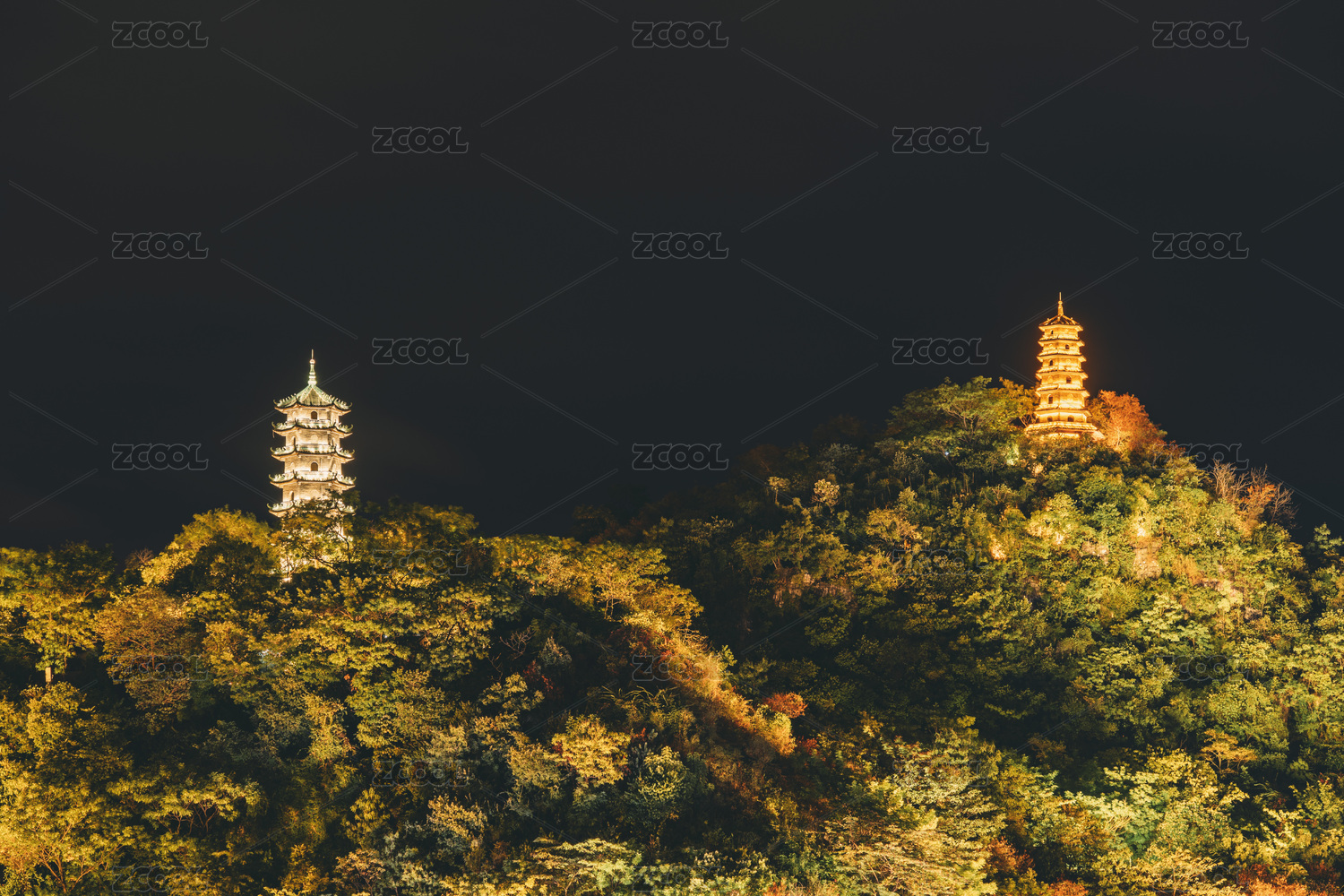 中国广西柳州蟠龙山,夜晚的金银双塔