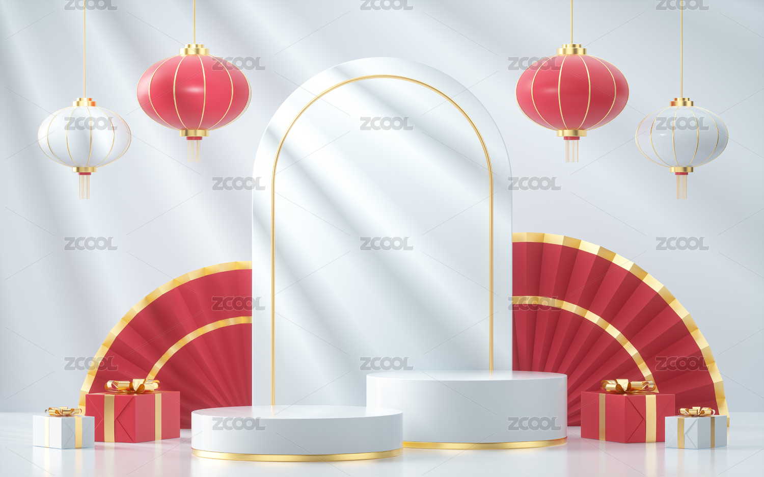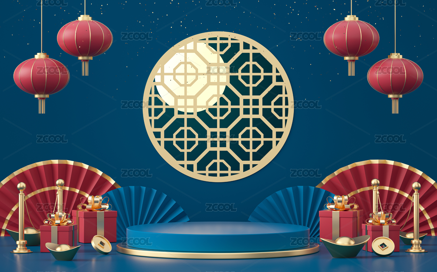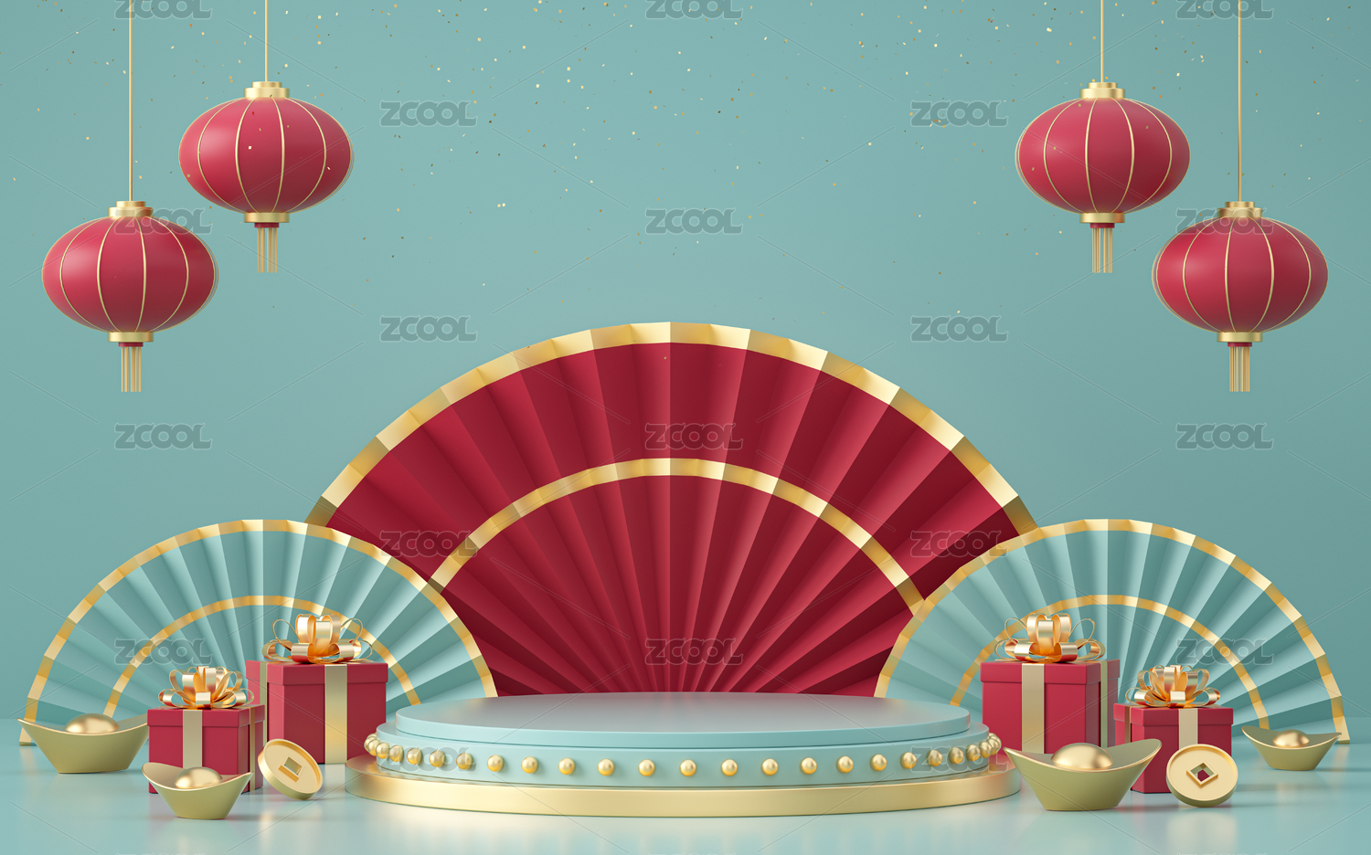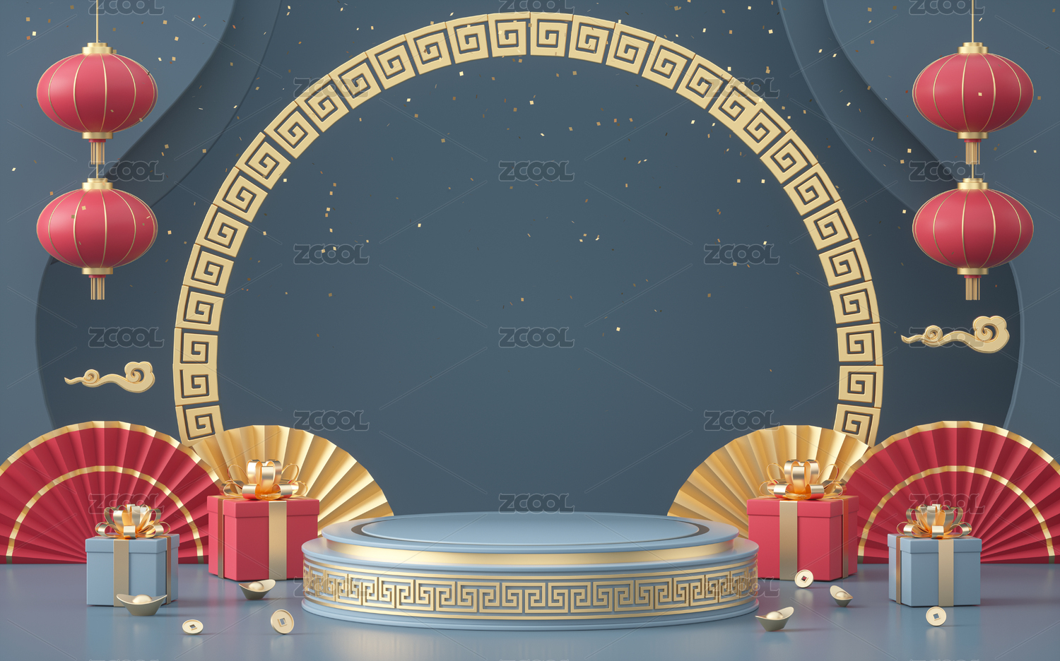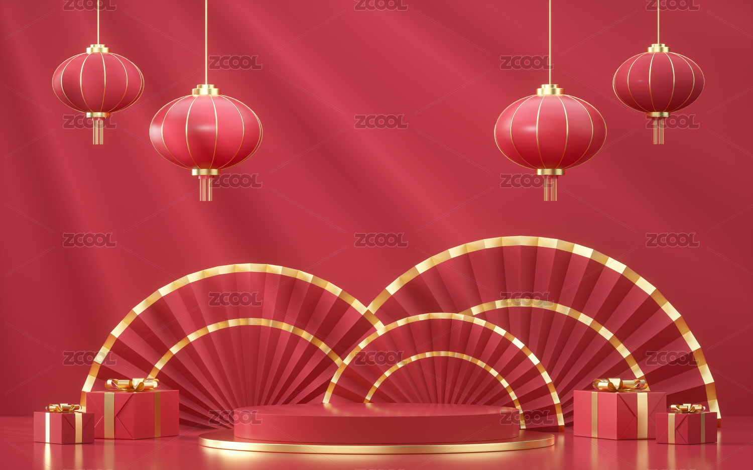 3d产品展台春节场景新年背景