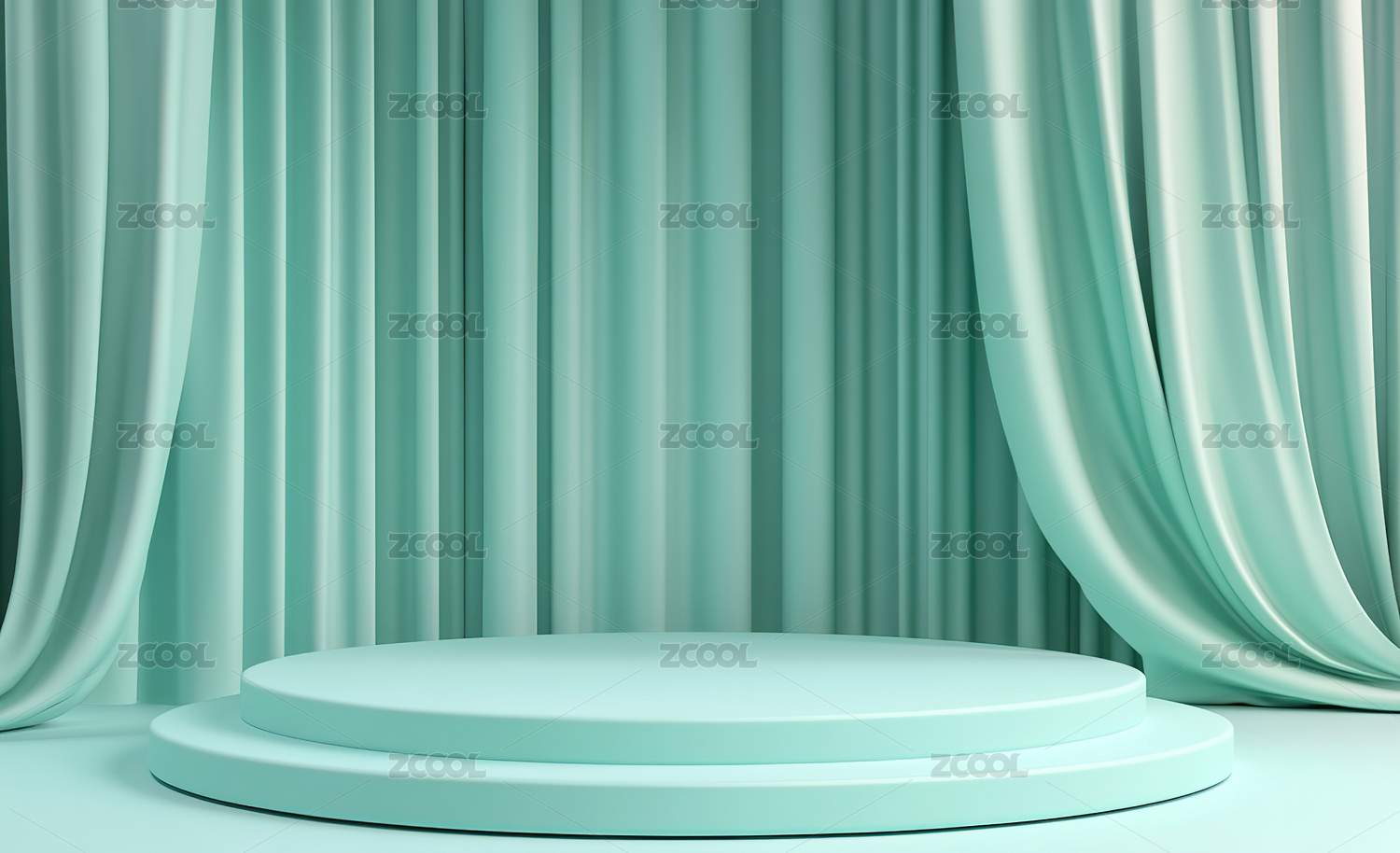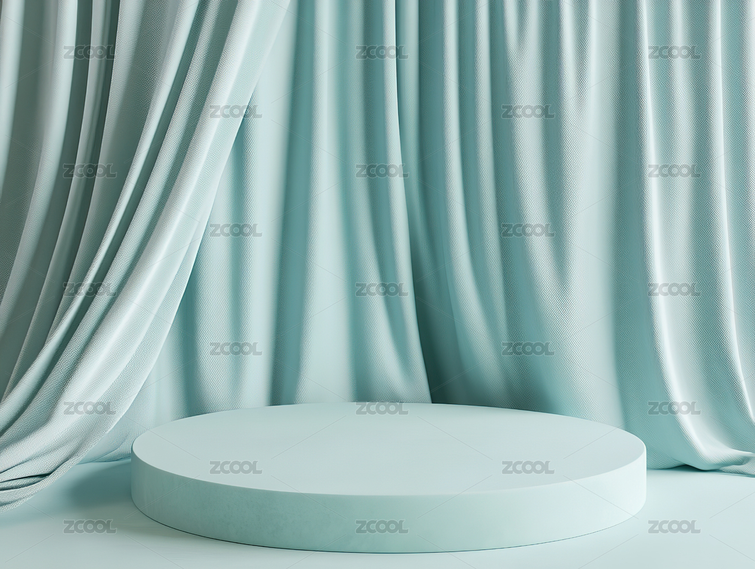 白色圆形展台与蓝色幕布