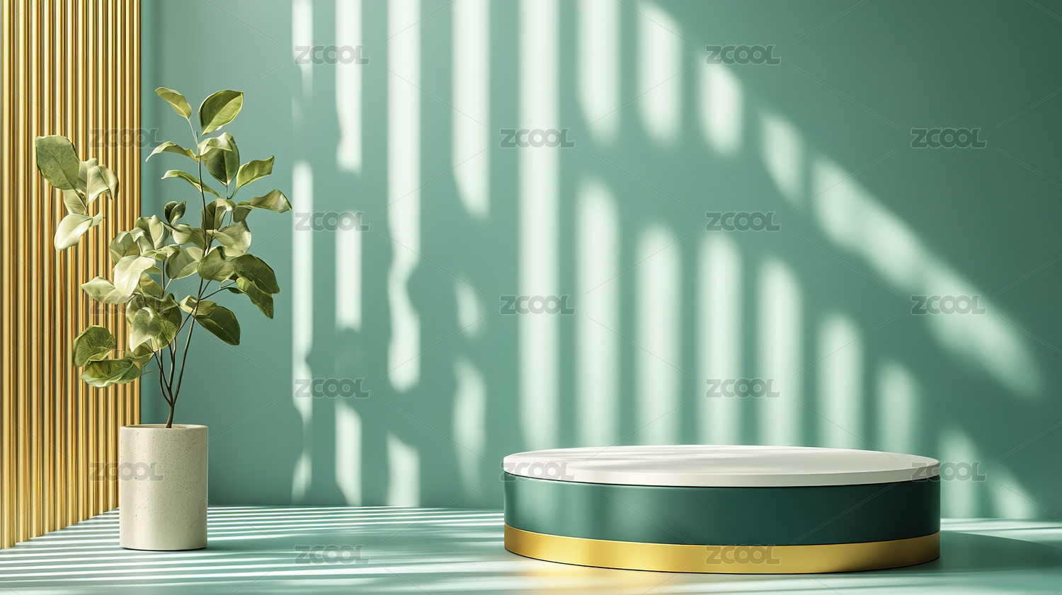 简约绿色圆台与光影效果