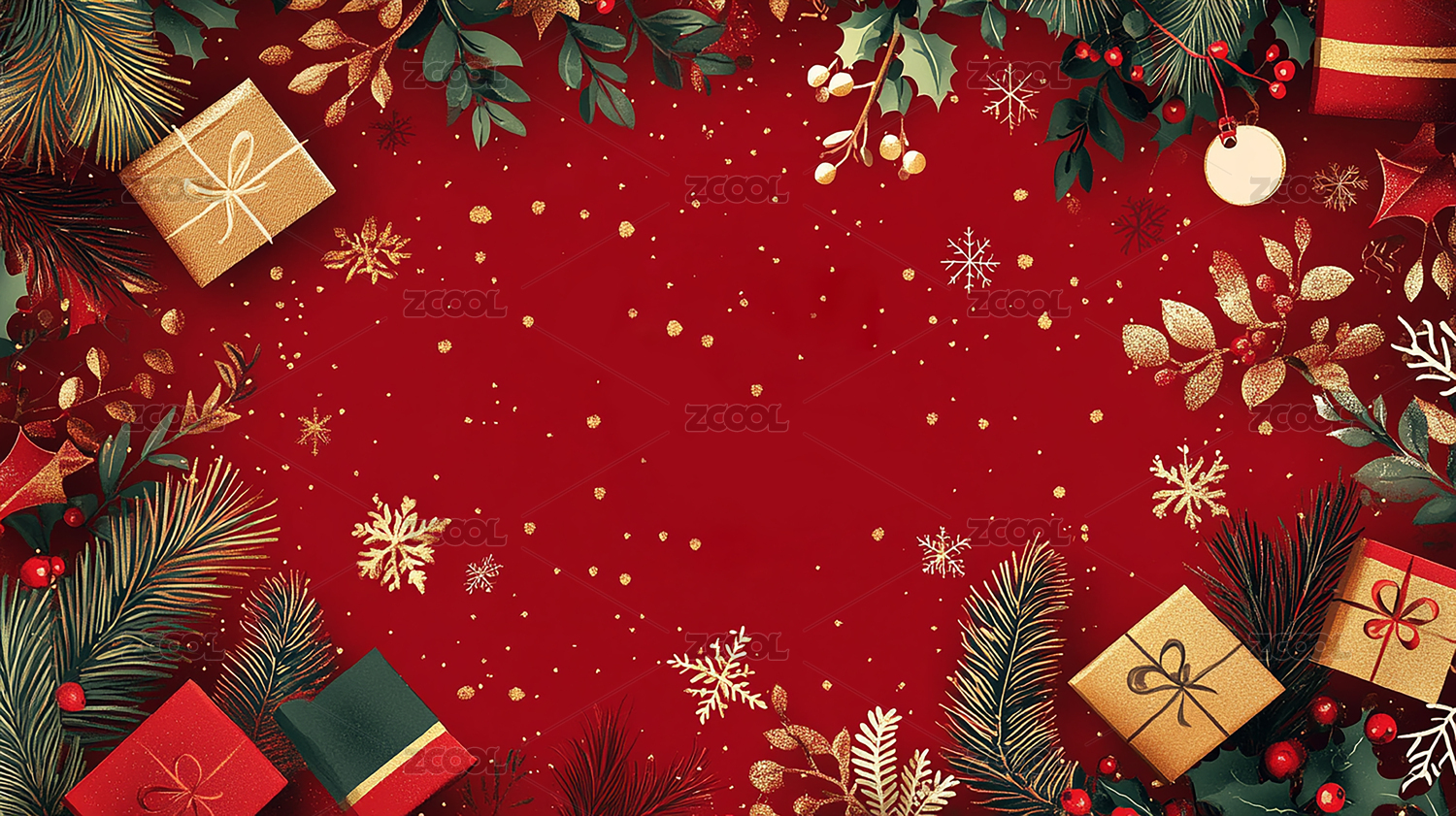 圣诞节矢量风格喜庆礼盒装饰品背景