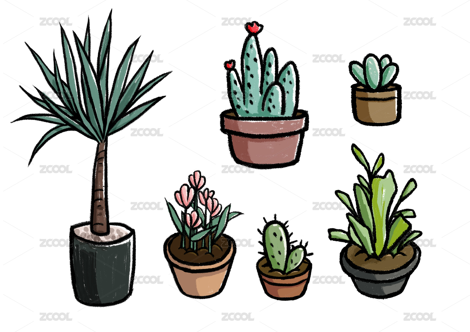 绿植,植物,家居,仙人掌,刺,绿色,花盆,风格,笔触,手绘